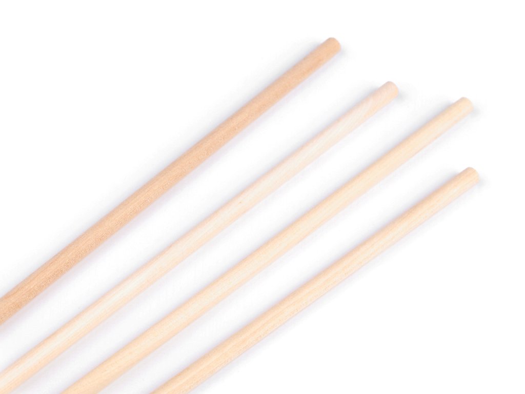 Dřevěné tyče z čistě a precizně opracovaného dřeva mají rovné konce. Na dotek jsou velice příjemné. Jsou vhodné na závěsné dekorace a různé druhy vázání šňůr technikou macramé. Skvěle poslouží i na jiné dekorace, např. na výrobu zapichovátek do květináčů. Přírodní dřevo můžete barvit. Vhodné barvy jsou akrylové nebo různá mořidla, která zdůrazní strukturu dřeva.- Průměr: 8 mm