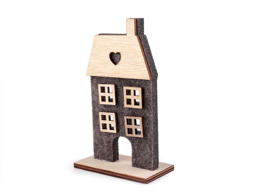 Dekorační domeček můžete postavit na parapet okna, polici nebo třeba krbovou římsu. Stylově doplní různá aranžmá. Materiál je v kombinaci dřeva a filcu. Domečky jsou jednostranné, pouze varianta č. 2 je oboustranná. Rozměry č. 1: 7 x 15,5 x 4,5 cm. Rozměry č. 2: 8 x 15 x 4 cm. Rozměry č. 3: 7,5 x 12,5 x 4 cm. Rozměry č. 4: 7,5 x 12,5 x 4 cm. Rozměry č. 5: 6 x 7,5 x 3,5 cm. Rozměry č. 6: 5,5 x 10 x 3,5 cm.- Šířka: 5,5 - 8 cm