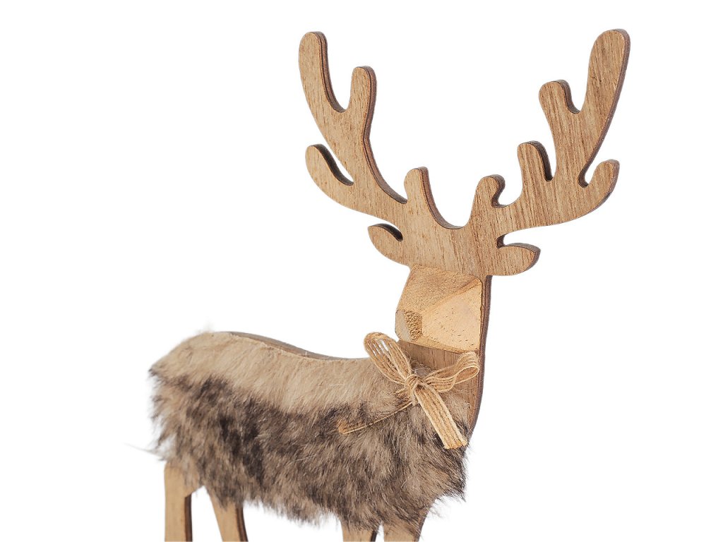 Dřevěný jelen vám doma vytvoří příjemnou atmosféru a dodá místnosti nádech přírody a špetku skandinávského stylu. Můžete ho umístit na komodu, poličku nebo stůl. Tělo jelena je pokryté jemnou umělou kožešinkou.- Rozměry: 20 x 4 cm