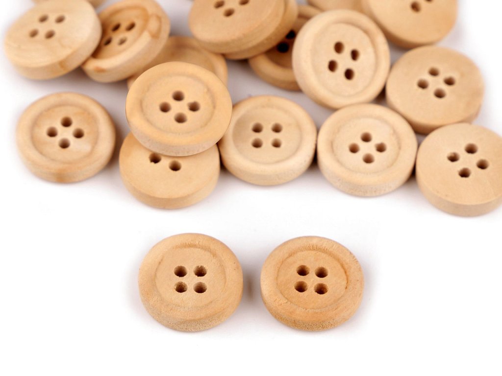 Menší dřevěné knoflíky můžete našít na tašky, pytlíky, kapsáře a různé doplňky. Jsou přírodní, vhodné třeba i k domalování. Velikost knoflíků naleznete v této tabulce. Knoflíky nedoporučujeme prát.- Průměr: 15 mm