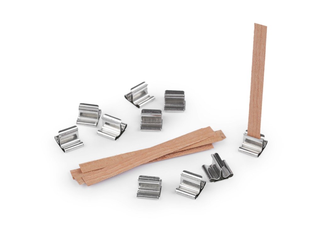 Dřevěné knoty s plíškem využijete na domácí výrobu svíček. Můžete je dle potřeby zkrátit. Po zapálení vydávají příjemné praskající zvuky. Knoty jsou ideální pro domácí výrobu svíček za použití parafinu, včelího, sojového, palmového, kokosového nebo gelového vosku. Jeho použití je jednoduché, protože kovový podstavec zajistí knotu stabilitu a rovné postavení. Stačí na spodní část knotu připevnit stojánek a položit jej na dno nádoby, poté při nalévání vosku přidržet horní část knotu uprostřed. Stojánek můžete i přilepit na střed dna nádoby (ideálně oboustrannou samolepkou). Pro lepší "praskavý" efekt při hoření se doporučuje potřít před litím vosku knot slabě olivovým olejem.- Šířka: 0,8 cm