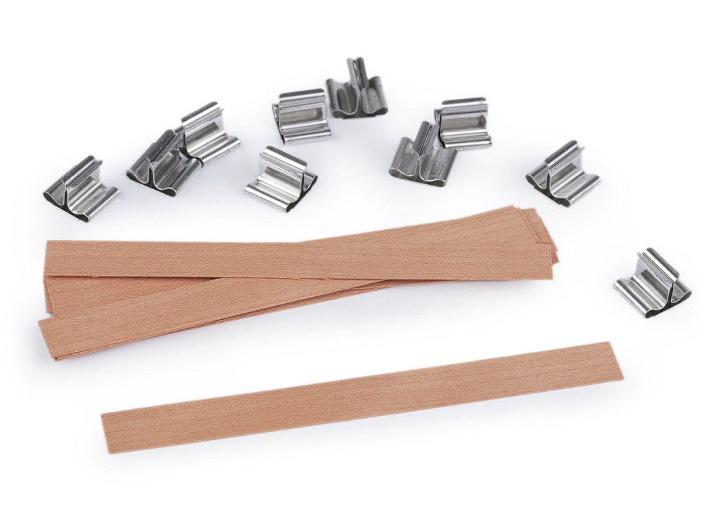 Knot z přírodního dřeva s kovovým podstavcem ocení všichni výrobci svíček, kteří mají rádi další přidané hodnoty svých výrobků. Po zapálení totiž dřevo vydává příjemné praskající zvuky. Dřevěný knot je ideální pro domácí výrobu svíček za použití parafinu, včelího, sojového, palmového, kokosového nebo gelového vosku. Jeho použití je jednoduché, protože kovový podstavec zajistí knotu stabilitu a rovné postavení. Stačí na spodní část knotu připevnit stojánek a položit jej na dno nádoby, poté při nalévání vosku přidržet horní část knotu uprostřed. Stojánek můžete i přilepit na střed dna nádoby (ideálně oboustrannou samolepkou). Po ochlazení vosku budete mít krásnou a zajímavou svíčku. Pro lepší "praskavý" efekt při hoření se doporučuje potřít před litím vosku knot slabě olivovým olejem.- Šířka: 1,3 cm