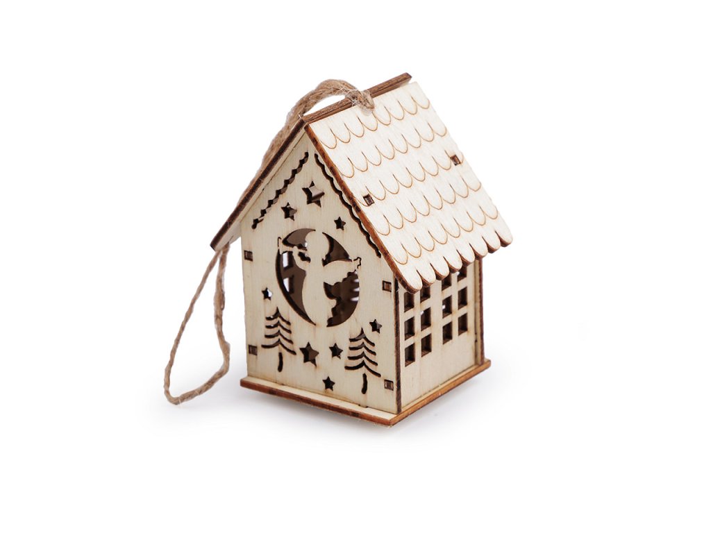 Dřevěný kostel svítící k zavěšení