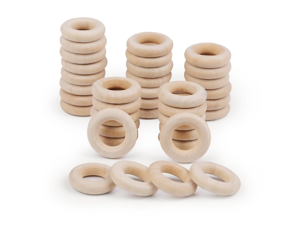 Dřevěné kroužky využijete na výrobu lapačů snů, náhrdelníků apod. Kroužky jsou nelakované, tudíž na ně můžete bez potíží malovat.- Vnitřní průměr: 12 mm