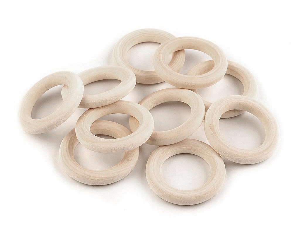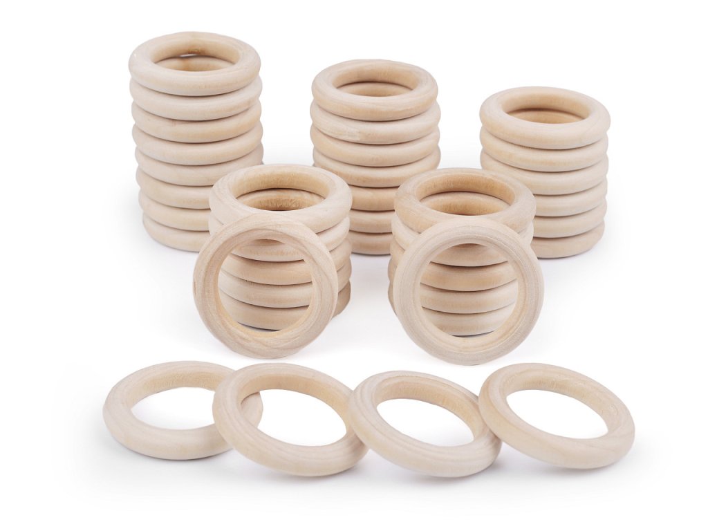 Dřevěné kroužky využijete na výrobu lapačů snů, náhrdelníků apod. Jsou nelakované, tudíž na ně můžete bez potíží malovat. Kroužky mohou při větší zátěži prasknout, jsou určeny pouze k dekoračním účelům.- Vnitřní průměr: 25 mm