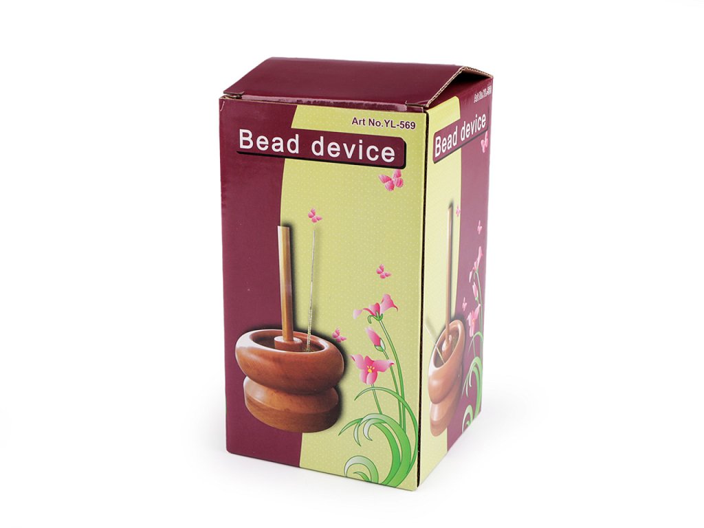 Dřevěný rotační navlékač se používá pro rychlé navlékání drobného rokajlu - skleněných perliček. Už žádné složité trefování do malé dírky. Rokajl stačí nasypat do misky (ne víc než do 2/3), roztočit, vložit nejlépe zahnutou jehlu dovnitř mezi korálky a navlékač se sám postará o navlečení. Doslova vás bude fascinovat, jak rokajl rychle stoupá po jehle vzhůru a sám se navléká. Do jehly můžete dát různý návlekový materiál - silon, superlon, zkrátka na co jste zvyklí. Miska se dá z podstavce sundat. Součástí balení jsou 2 zahnuté jehly. Navlékač č.1 je má dlouhé 11,3 cm, u navlékače č.2 jsou jehly dlouhé 18,5 cm.- Průměr: č. 1: 9 cm