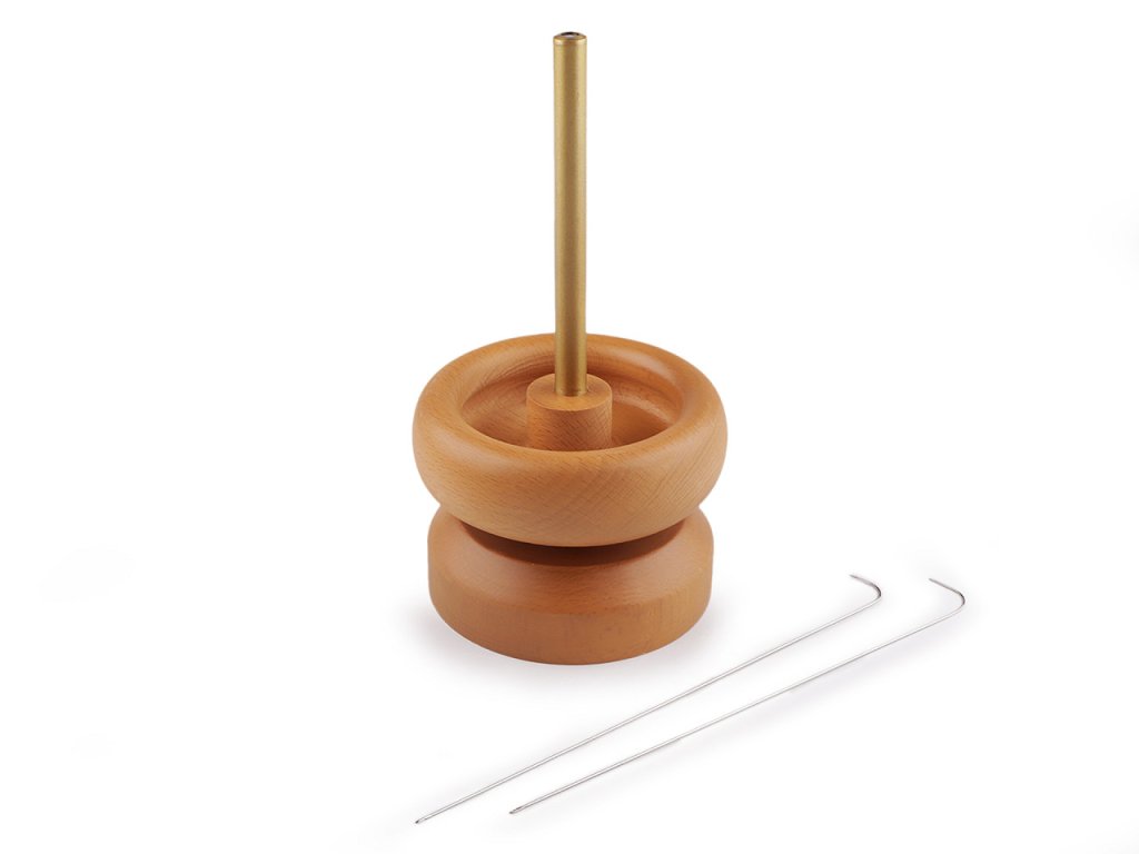 Dřevěný mlýnek k navlékání rokajlu Ø9 a 10 cm s jehlou