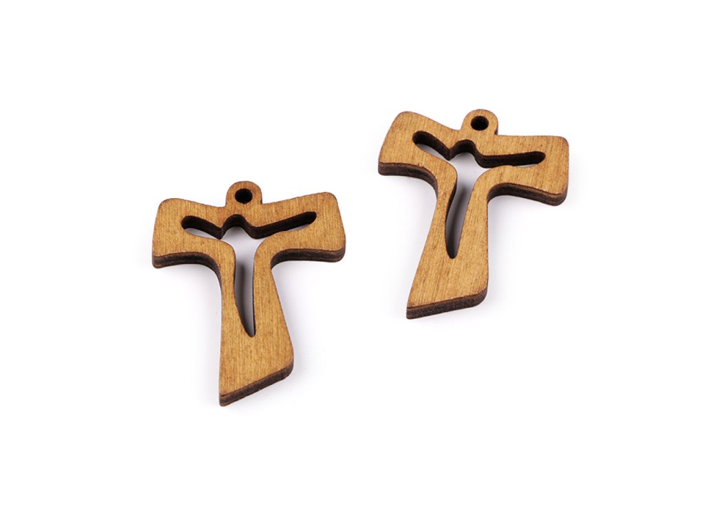 Dřevěný přívěsek kříže zaujme pozornost svým netradičním vzhledem. Je velice kvalitní, mořený, precizně vyřezaný laserem. Nahoře má otvor k navlečení šňůrky, šlupny nebo rozevíracího kroužku. Můžeme je využít k výrobě náramků, růženců apod. Může být každodenní připomínkou vaší křesťanské víry, ale i stylovým doplňkem převleku poutníka, křižáka apod.- Rozměry: 30 x 38 mm