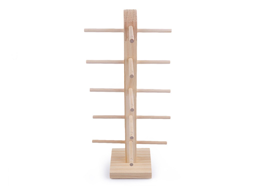 Dřevěný stojan na náramky nebo brýle je skvělým pomocníkem do prodejen i praktickou dekorací do bytu. Dodáváme jej v rozloženém stavu, jeho složení je jednoduché. K hlavní noze se přišroubuje podstavec a do vyvrtaných otvorů se zasunou boční kolíčky. Díky tomu je stojan skladný, vhodný pro převoz, což ocení zejména prodejci ve venkovních stáncích. Podstavec měří 9,5 x 9,5 cm.- Rozměry: 17 x 37 x 13 cm