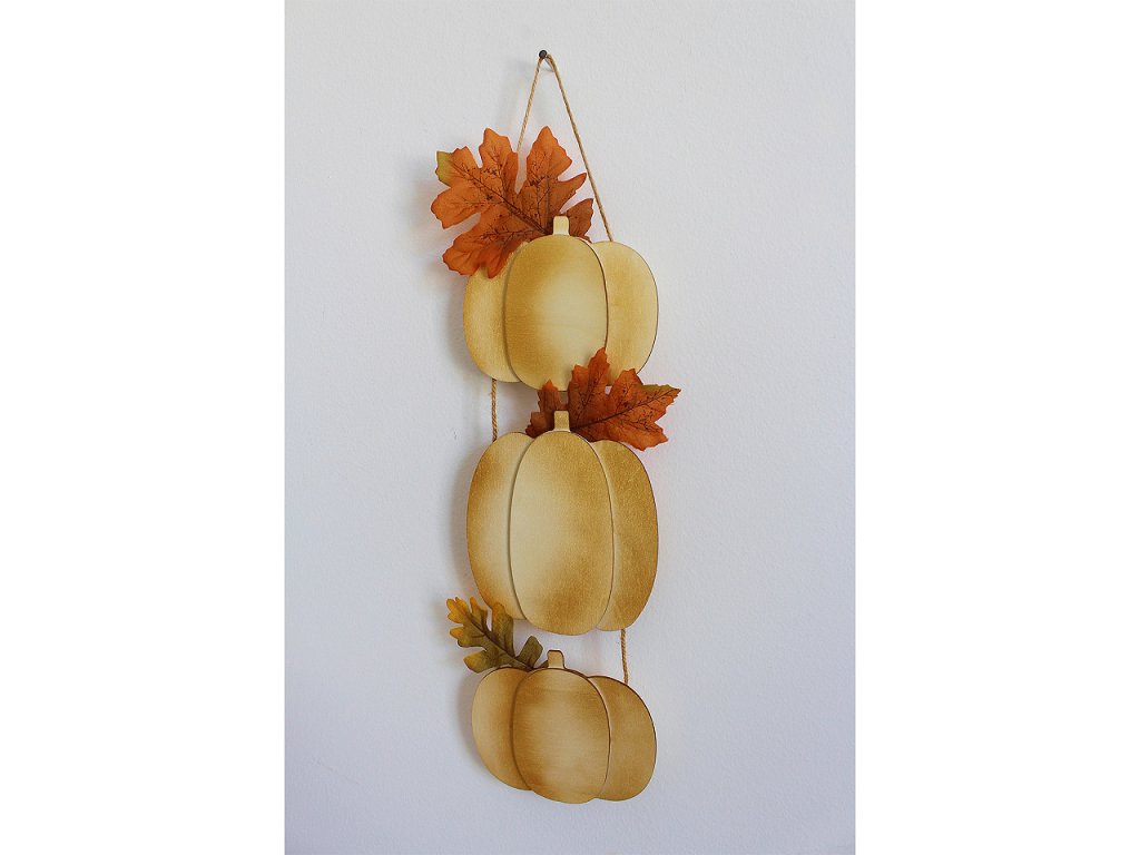 Závěs z dřevěných výřezů dýní působivě vynikne jako podzimní dekorace na zdi, dveřích i v oknech. Je vyrobený z kvalitní nelakované překližky, která je ideální pro další úpravy. Povrch je hladký, snadno jej můžete dekorovat podle vlastní fantazie. Můžete použít barvy, laky, třpytky nebo jiné dekorační techniky k vytvoření jedinečného doplňku. Díky praktickému provázku je závěs připravený k zavěšení. Je krásný i ve své přírodní podobě, skvěle se hodí na Halloween či podzimní výzdobu, ale také jako zajímavý prvek pro celoroční vystavení. Rozměry dýní jsou 12,8 x 10,8 cm a 12,8 x 14,3 cm.- Šířka: 12,8 cm