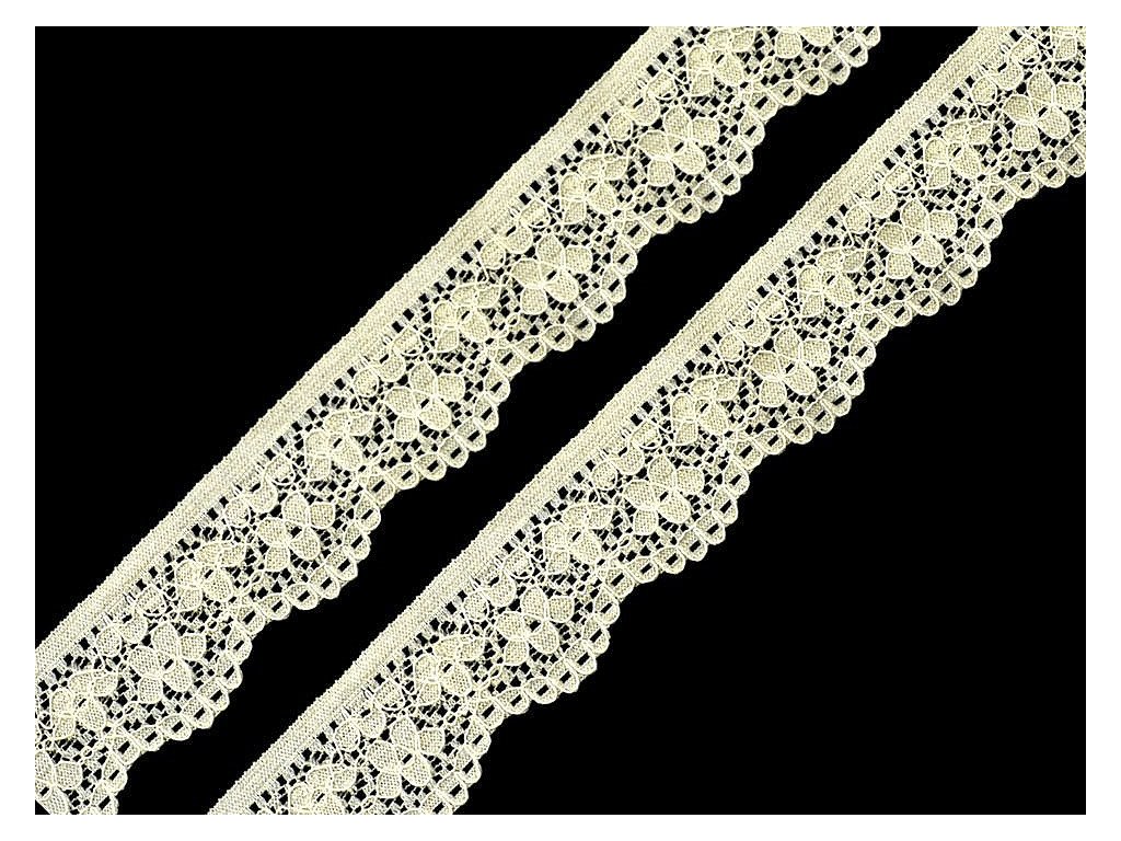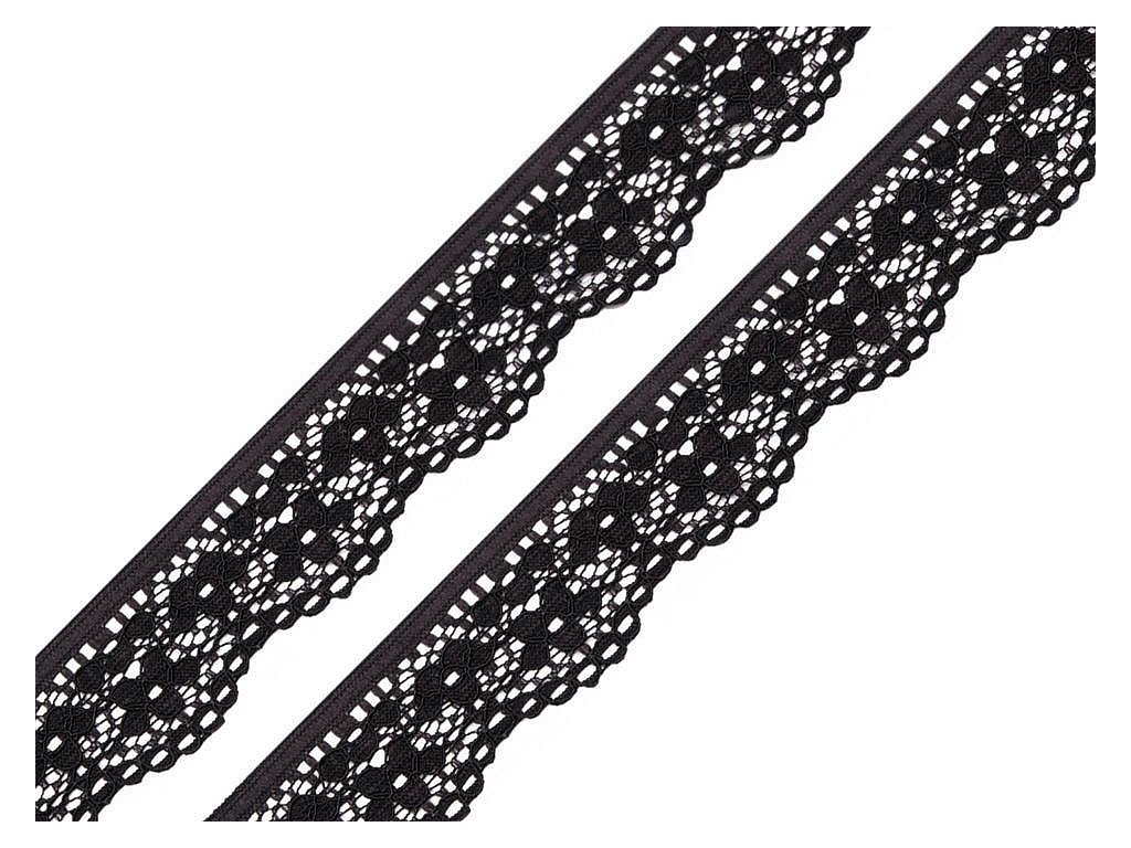 Pružnou krajku s jemným květinovým vzorem zakončují pravidelné obloučky. Použití: S krajkou velmi originálně ozdobíte spodní prádlo, podvazky, tílka, halenky, šaty apod. Díky vysokému podílu elastanu ji můžete využít také na výrobu čelenky do vlasů. Šíře krajky se po konečné úpravě může lišit o ±6%. Návin obsahuje ±0,3 m.- Šíře: 25 mm