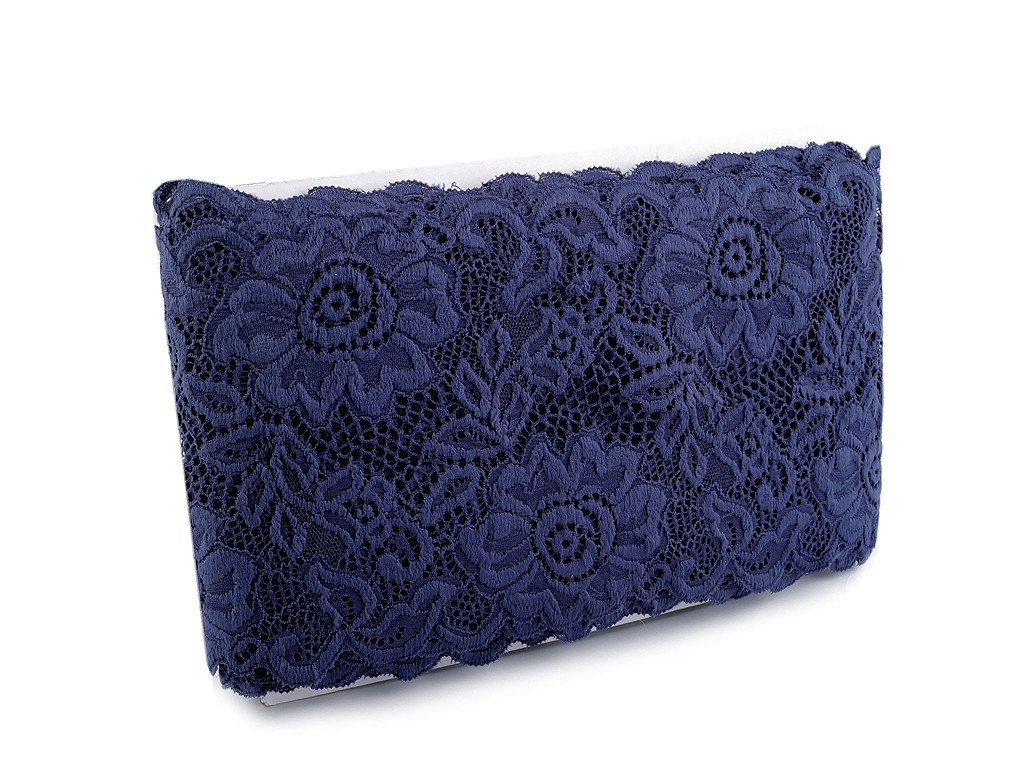 Elegantní krajka je ozdobena květinovým vzorem. Díky své pružnosti je velmi oblíbená. Použití: Krajka je vhodná nejen k lemování, ale i na zdobení dámských halenek, kostýmků, sukní a společenských šatů. Šíře krajky se po konečné úpravě může lišit o ±6%. Varianta č. 2 může mít šíři 15,5 cm.- Šíře: 14 cm