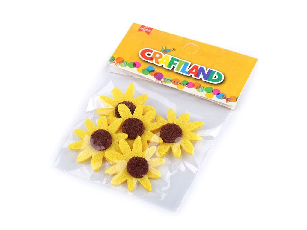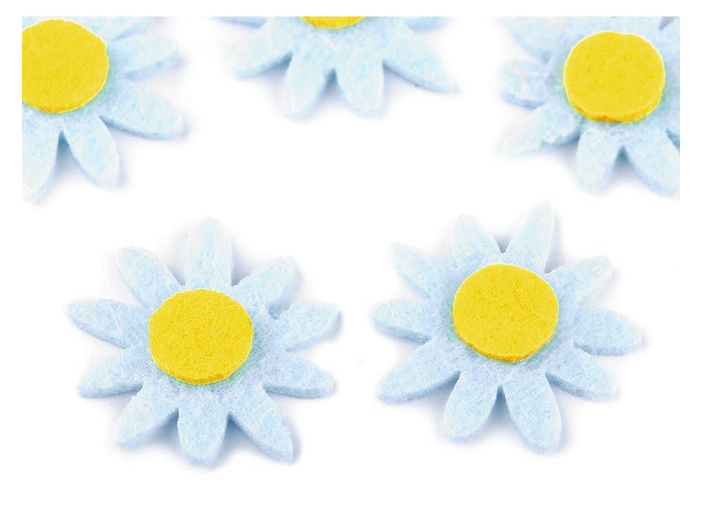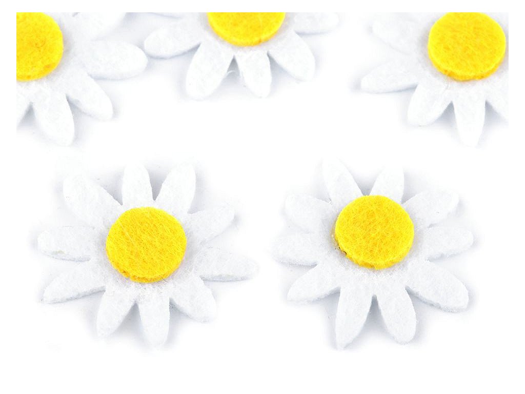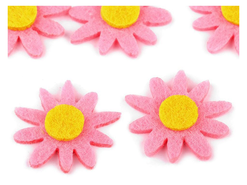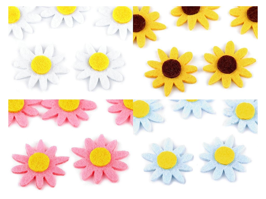 Květy z filcu / plsti se hodí k přišití i nalepení. Využijete je v mnoha výtvarných technikách, skvěle se hodí na tvoření s dětmi. Tento materiál je syntetická (polyesterová) plsť, nejedná se o přírodní materiál.- Průměr: 3 cm