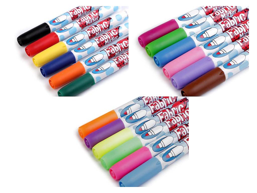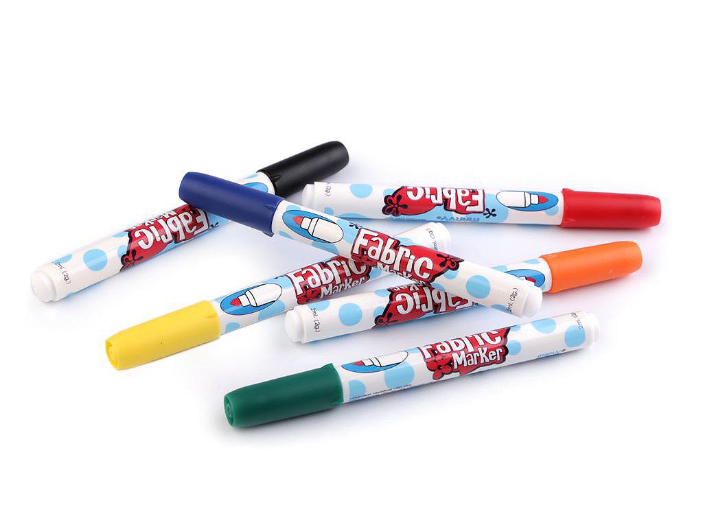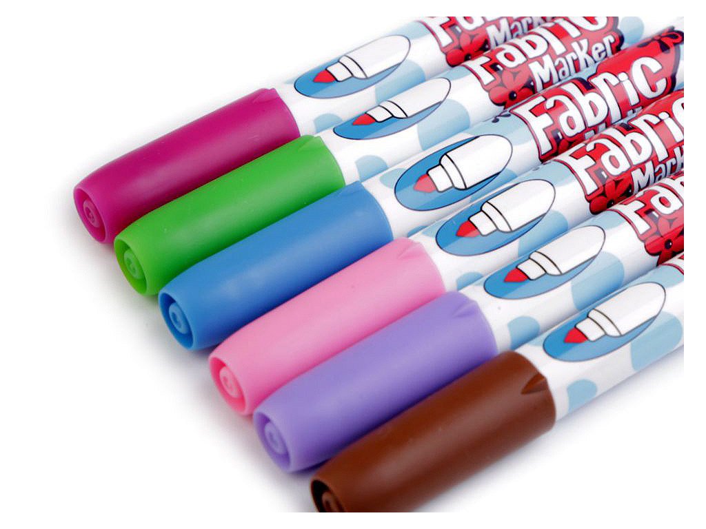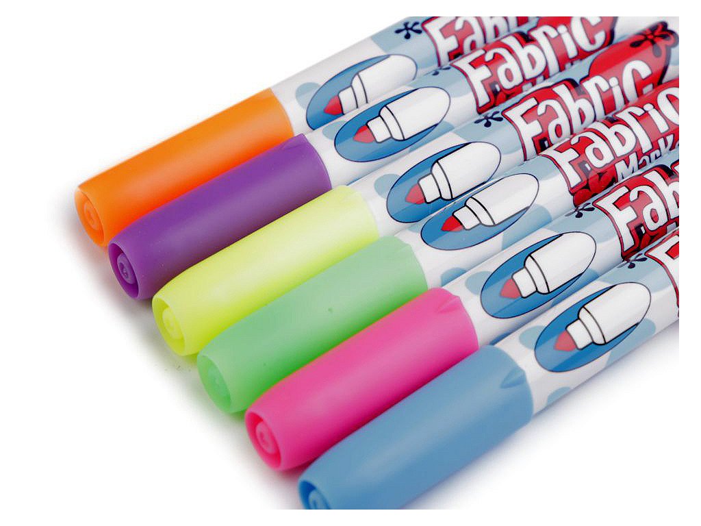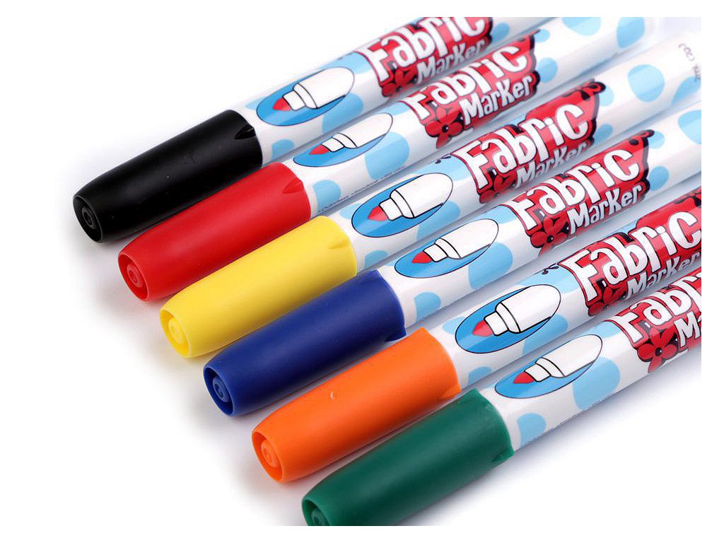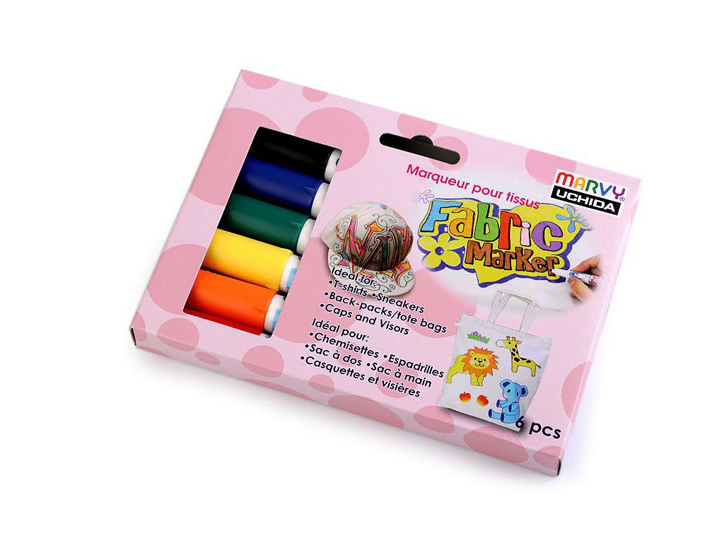 Sada kvalitních fixů (popisovačů) na textil japonské výroby. Jsou voděodolné, ihned zasychají. Nemusí se zažehlovat. Jsou vhodné na světlý textil. Můžete je použít na většinu látek, nejvhodnější je bavlna. Kvůli zafixování barvy doporučujeme prát nejdříve po 24 hodinách na 30°C. Netoxické, bez zápachu. Nevhodné pro děti do 3 let.- Sada: 6 ks