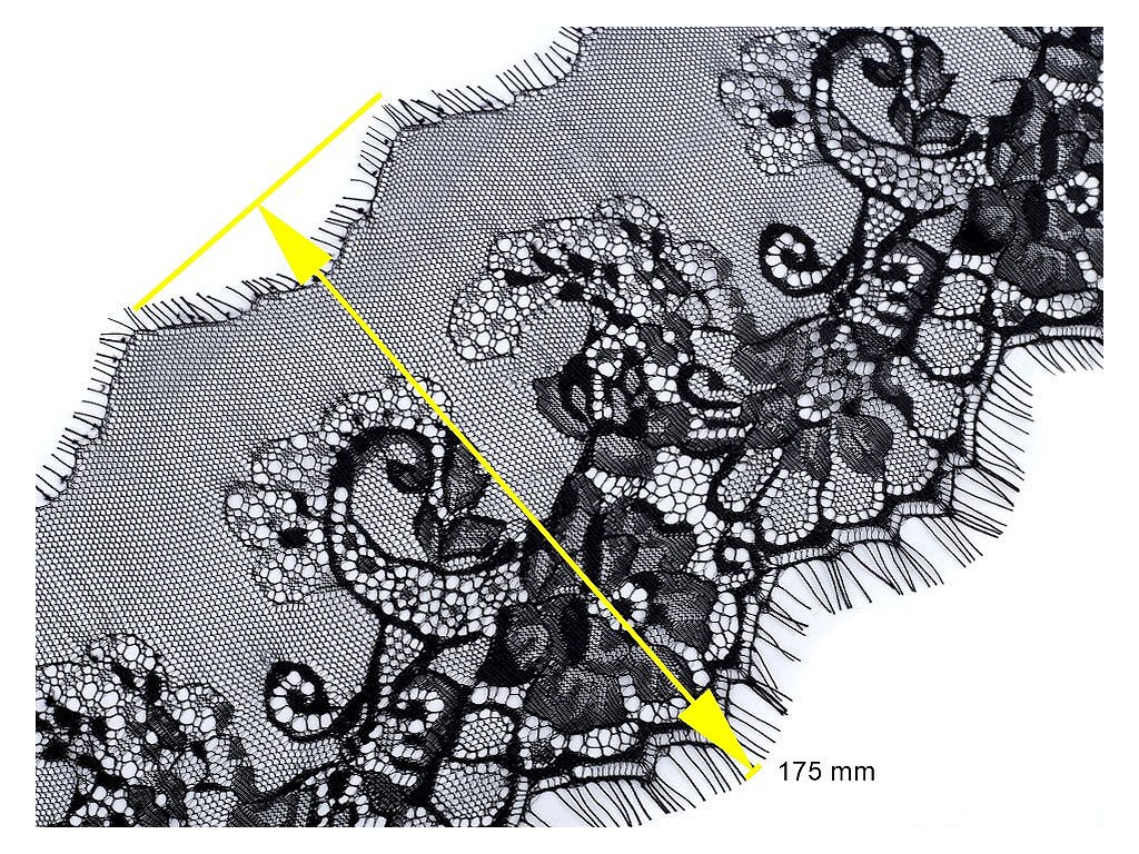 Francouzská krajka je romantická a elegantní. Použití: Krajku využijete na ozdobení společenských i svatebních šatů, halenek, kalhot, sukní nebo spodního prádla. Vynikne jako lemování. Francouzskou krajku nabízíme přímo od výrobce pouze v 3metrové délce. V balení 30 m je 10 ks po 3 m. Šíře krajky se může lišit o ±1 cm.- Šíře: 17,5 cm