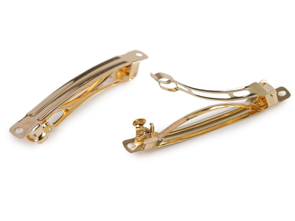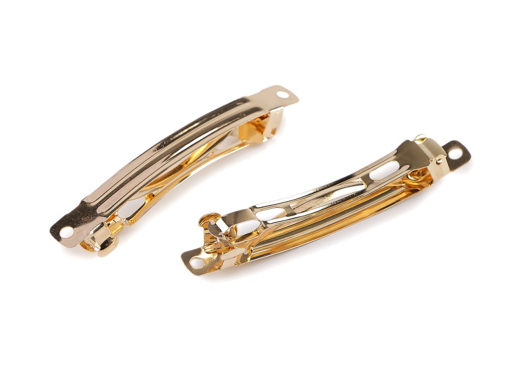 Francouzské spony jsou oblíbeným komponentem k dalšímu ozdobení. Zachytí velké množství vlasů a svým designem povýší účes z nudného ohonu na zajímavý model. Jsou hojně využívané řezbáři, dráteníky nebo tvůrci, kteří pracují s textilem či korálky. Horní strana má na každém konci otvor k uchycení ozdoby. Její vnitřní průměr je 3 mm. Délka části pro vlasy je 5 cm. Náš Tip: zkuste si sponu ozdobit různými korálky. Navlečte je na tenký drátek a pak je omotejte okolo svrchní část spony, čímž vytvoříte jedinečnou vlasovou ozdobu podle svých představ.- Rozměry: 9 x 79 mm