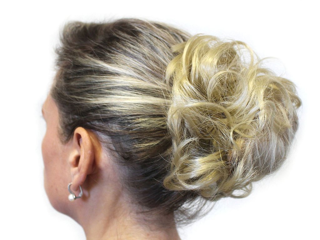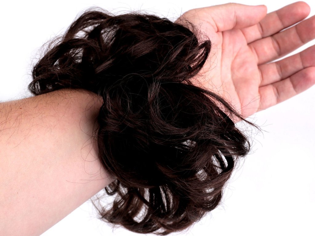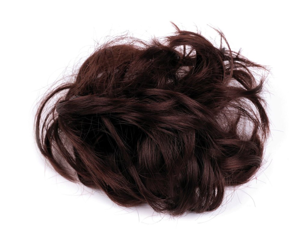 Vlasový příčesek s gumičkou se používá k vytvoření většího objemu účesu. Věrně imituje pravé vlasy, můžete jej připevnit k copu nebo drdolu. Jeho použití je velice snadné, účes si vytvoříte jednoduše, dle vaší libosti a fantazie. Příčesek se hodí všem, kdo neradi tráví dlouhý čas úpravou vlasů, dá se nosit ve všední dny i na slavnostní příležitosti. Obvod gumičky je 14 cm v nenataženém stavu, dá se natáhnout až na délku 23 cm. Průměr celého příčesku je 19 cm. Délka 12 cm je délka nataženého vlasu.- Obvod gumičky: 14 -23 cm