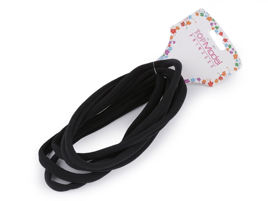Dlouhé gumičky do vlasů jsou extra pevné a k vlasům šetrné. Využijete je na zafixování drdolů, dredů, zdobení copů apod. Lehce je zkombinujete s dalšími vlasovými doplňky. Jsou vhodné i pro ženy s hustými vlasy. Vnitřní průměr volně položené gumičky je cca 9 cm, maximální délka obvodu po roztažení je 65 cm. Gumičky jsou připevněné ke kartičce s otvorem k zavěšení na prodejní stojan. Na kartičce je 6 ks gumiček.- Průměr: cca 10 cm