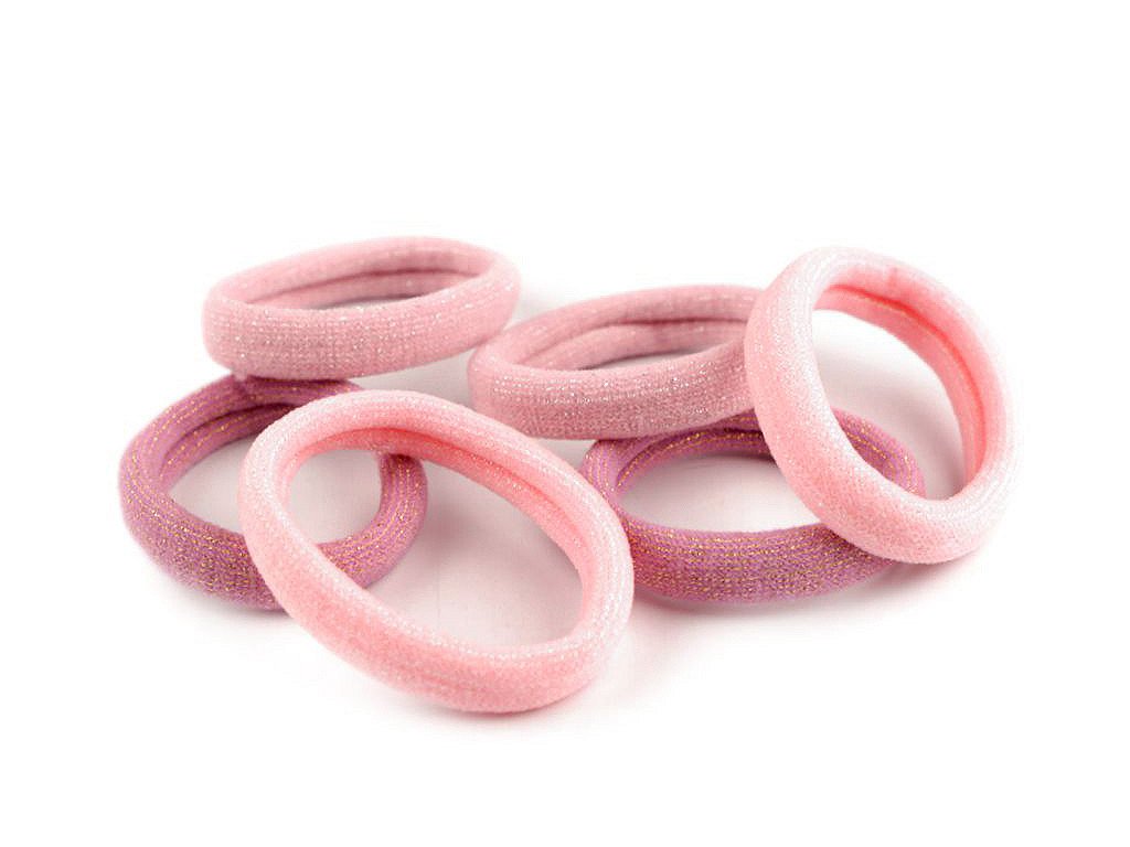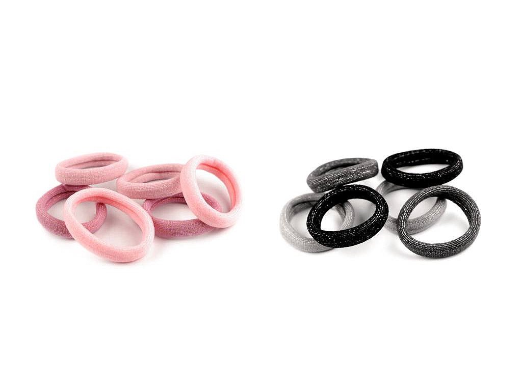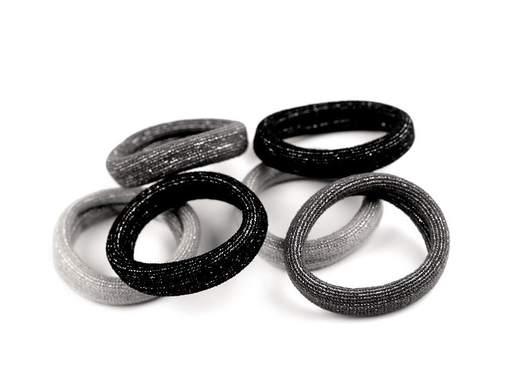 Gumičky do vlasů vypadají velice elegantně - díky všitým lurexovým vláknům se dokonale třpytí. Jsou vhodné na vytvoření jednoho či více copů. Gumičky výborně drží na hrubých i jemných vlasech. V jedné sadě je 6 gumiček. Vnitřní průměr gumičky je cca 3,5 cm a maximální délka obvodu po roztažení je cca 16 cm. Gumičky jsou na papírové kartě, která má otvor na zavěšení na prodejní stojan.- Průměr: 3,5 cm