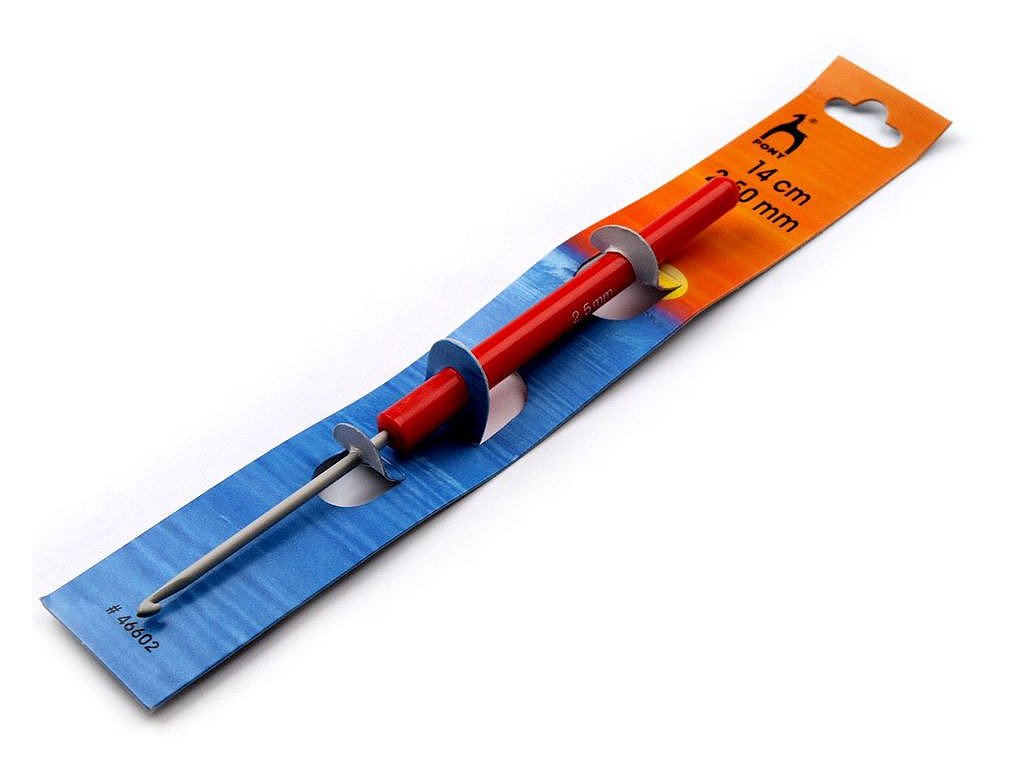 Háček je vhodný na háčkování vlny. Je vyroben ze slitiny hliníku a opatřen plastovou rukojetí pro pohodlnější uchopení. Můžete si vybrat z velikostí 2, 2,5, 3 a 3,5. U všech přízí jsou napsané doporučené velikosti háčků. Velikost háčků se řídí podle čísel - háček s nejnižším číslem je nejslabší, naopak háček s nejvyšším číslem je nejsilnější.- Délka: 14 cm