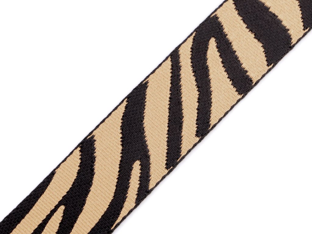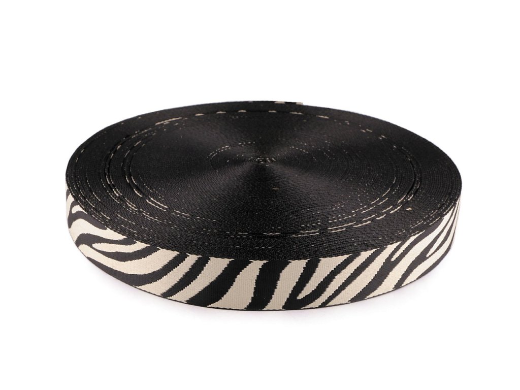 Oboustranný textilní popruh svým designem imituje zebru. Využijete ho na kabelky, batohy a tašky.- Šíře: 38 mm