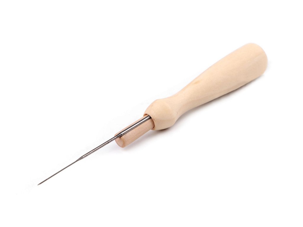 Bez jehly na plstění se neobejdete, když plstíte technikou vypichování. Má praktickou dřevěnou rukojeť, jež se pohodlně drží v ruce, tudíž odpadá náročné držení jehly v prstech. Jehla je trojhranná, po stranách má drobné drážky na zachycení vlny. Jejístřední velikost se hodí od začátku práce až na finální tvarování. V držáku se dá díky jednoduchého systému jehla vyměnit. Návod k použití: Vezměte smotek rouna a prsty jej vytvarujte do přibližně požadovaného tvaru. Plstící jehlou začněte do rouna píchat postupně a rovnoměrně ze všech stran. Plstící jehla má po stranách drobné drážky, do nichž se vlákna vlny zachytávají a tím, že vlnu propíchneme, zachycená vlákna se spletou. Více o plstění a jak na to, se můžete dočíst v našem článku.- Průměr jehly: 0,5 mm