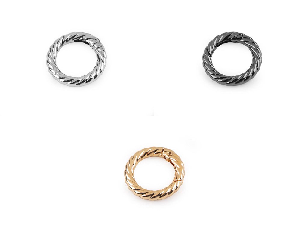 Designová kulatá karabina vám poslouží na připevnění přívěsků ke kabelce, batohu či k tašce apod. Je elegantně tvarovaná s jemným krouceným dekorem, což jí dodává atraktivní vzhled.- Vnitřní průměr: 20 mm