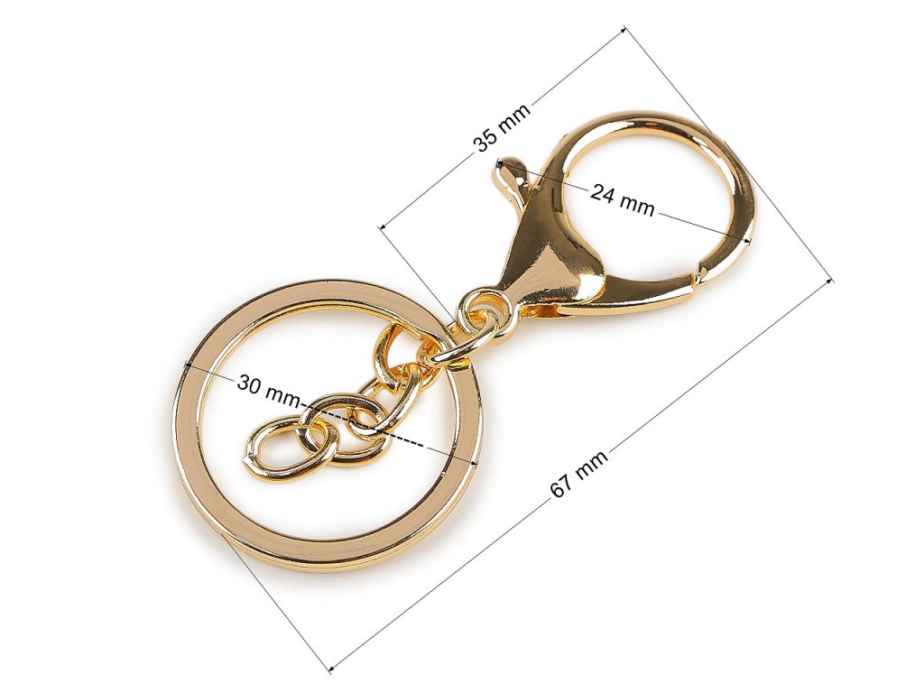 Karabinu s kroužkem a řetízkem využijete na klíče, přívěsky na batohy, kabelky apod. Délka řetízku je 34 mm.- Celková délka: 67 mm