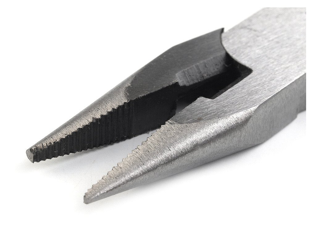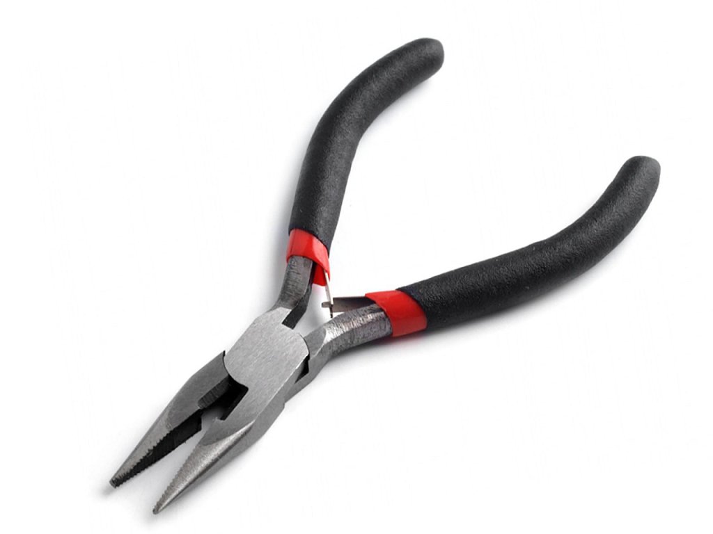 Praktické kleště 2 v 1. V přední části mají zoubky, v zadní jsou ostré štípací čelisti. Přední část s malými zoubečky můžete použít na zamačkávání rokajlu, k uzavření koncovky na kůži, k práci se spojovacím kroužkem apod. Špička kleští je dostatečně tenká k otevírání bižuterních komponentů jako jsou ketlovací jehly, nýty nebo kroužky. Kleštěmi můžete také uštípnout drátek o tloušťce 0,3 mm nebo nylonové lanko, protože je v nich umístěna i štípací část. Mají drsnou rukojeť. Vzhledem k technologii finální povrchové úpravy doporučujeme před prvním použitím čelisti otřít do papírového ubrousku. Pomocí těchto kleští můžete ketlovat a drátovat.- Velikost: 12,5 cm