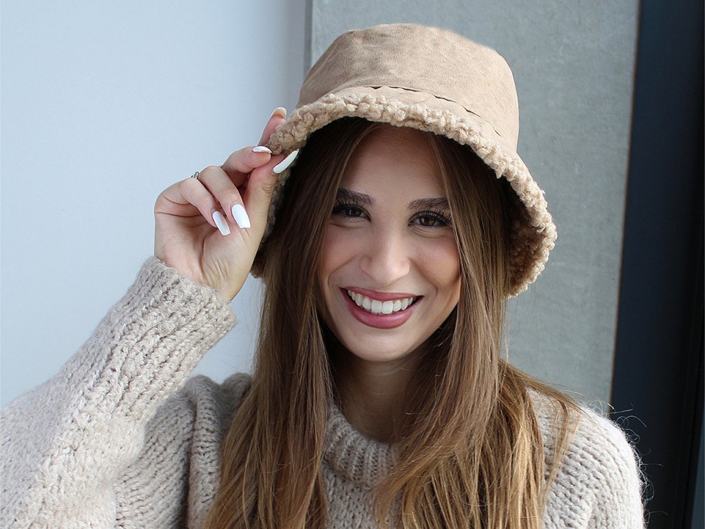 Dámský klobouk Teddy je stylový a elegantní. Je oboustranný, jedna strana je i imitace semiše, druhá z umělé kožešiny beránka. Záleží na vás, kterou stranu si vyberete na nošení, můžete je kdykoliv střídat. V nepříznivém počasí jistě oceníte jeho hřejivost. Klobouk si můžete ozdobit třeba broží, záleží jen na vaší fantazii. Délka krempy je 7 cm, klobouk je kulatý. Klobouk č.3 je jednostranný, uvnitř má stahovací pásku. Jednotlivé části klobouku.- Průměr: 28 cm