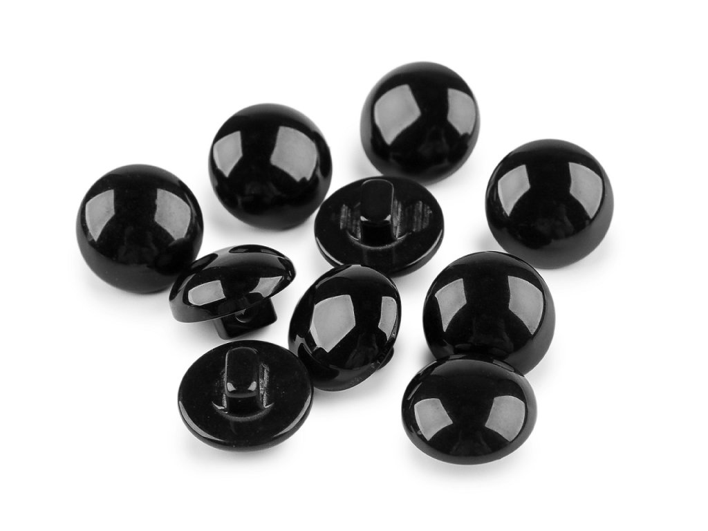 Plastové knoflíky mají spodní přišívání a polokulatou hlavičku. Jsou vhodné na halenky, šaty, svetry, kabátky apod., ale také je můžete použít jako oči loutek a různých postaviček. Velikost knoflíků naleznete v této tabulce.- Průměr: 15 mm