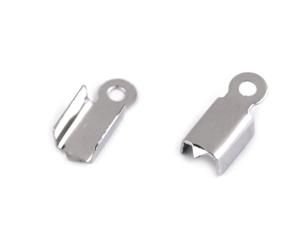 Koncovka z kvalitní nerezové oceli je určená jako zakončení na kůži, provázek nebo stužky. Ve středu má koncovka malý trn, který zajistí vložený materiál proti posunu a spolehlivě jej udrží na místě. Návod k použití: konec kůže se vloží do prostředního dílu koncovky (můžete jej zakápnout vteřinovým lepidlem) a kleštěmi postupně zacvakněte jednu boční stranu a pak druhou. Do očka navlékněte spojovací kroužek a do něj umístěte zapínání.- Vnější rozměry: 4 x 10 mm