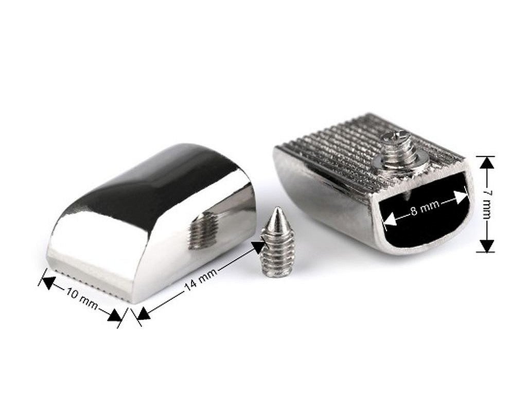 Elegantní kovovou koncovku s vysokým leskem využijete na zakončení zipu, převážně u kabelek nebo tašek. Schováte do ní nevzhledné konce a šroubkem je zespodu přišroubujete, aby koncovka nevypadla. Je vhodná pro velikosti zipů No 3, No 4, No 5, No 6, No 7, No 8. U varianty č. 3 jsou v některých baleních šroubky v černé barvě.- Šíře: 8 mm