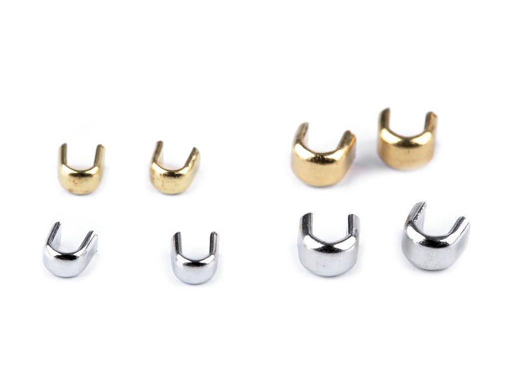 Kovové koncovky se nasazují na horní konce zipu, aby z nich nevyjel jezdec. Připevníte je tak, že je nasadíte na spirálu a lehce přicvaknete kleštěmi. Koncovky se hodí pro spirálové a kovové zipy, nejsou vhodné pro kostěné zipy. V balení po 10 g je cca 130 ks koncovek (No 3), cca 60 ks koncovek (No 5), 40 ks koncovek (No 8) nebo 17 ks koncovek (No 10).- Velikost: 3; 5; 8; 10