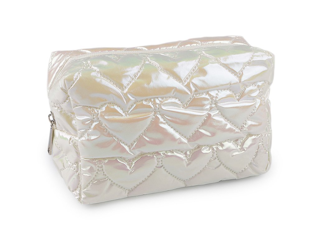 Kosmetická taška / pouzdro prošívané, srdce 18x11 cm holografické