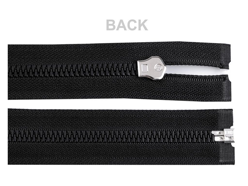 Kostěný zip se v této šíři používá na bundy, kabáty, mikiny či svetry. Plastové zoubky imitují kovový zip. Kovový jezdec je opatřený aretací autolock, což je automatická brzda, která brání samovolnému rozepínání zipu.- Šířka zipu: 3,5 cm