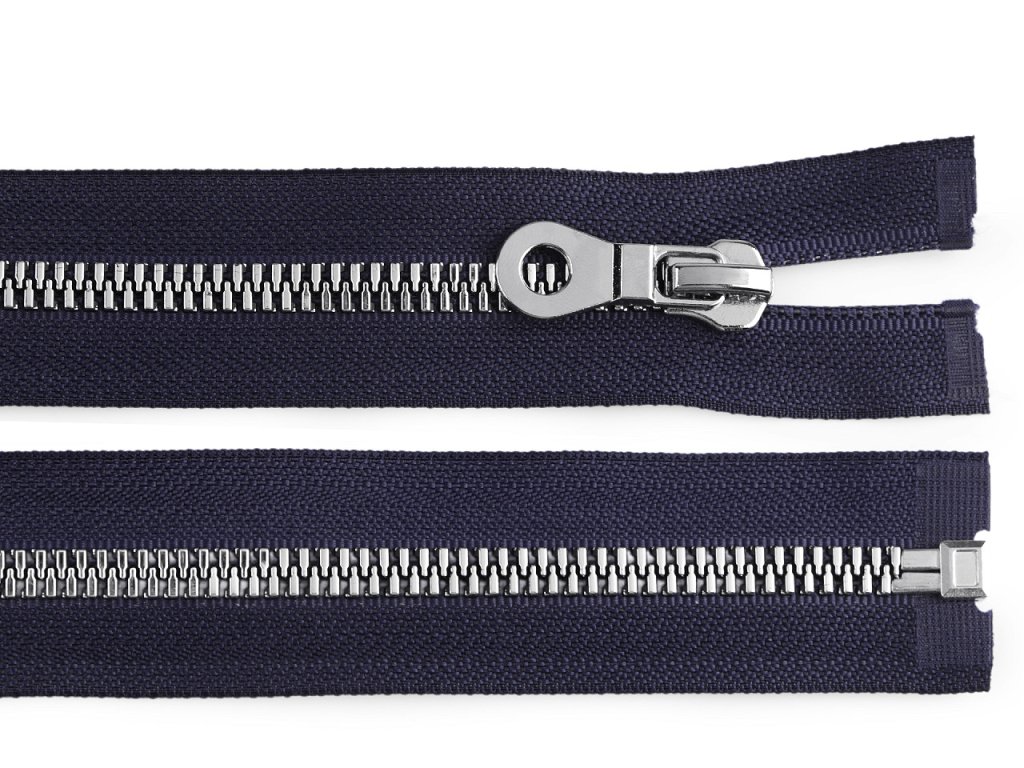 Kostěný zip se používá na bundy, kabáty, mikiny nebo svetry. Zoubky imitují zoubky kovového zipu. Kovový jezdec má automatickou brzdu, tzn. že brání samovolnému rozevírání zipu.- Šířka zubů: 7,7 mm
