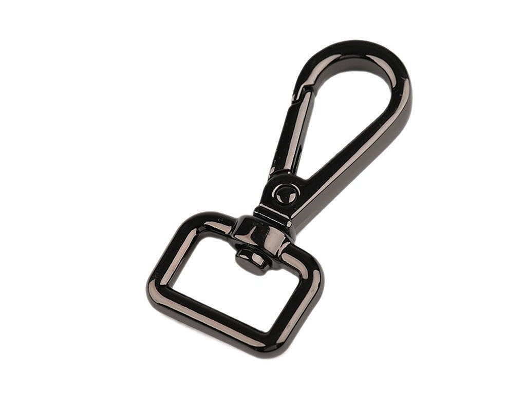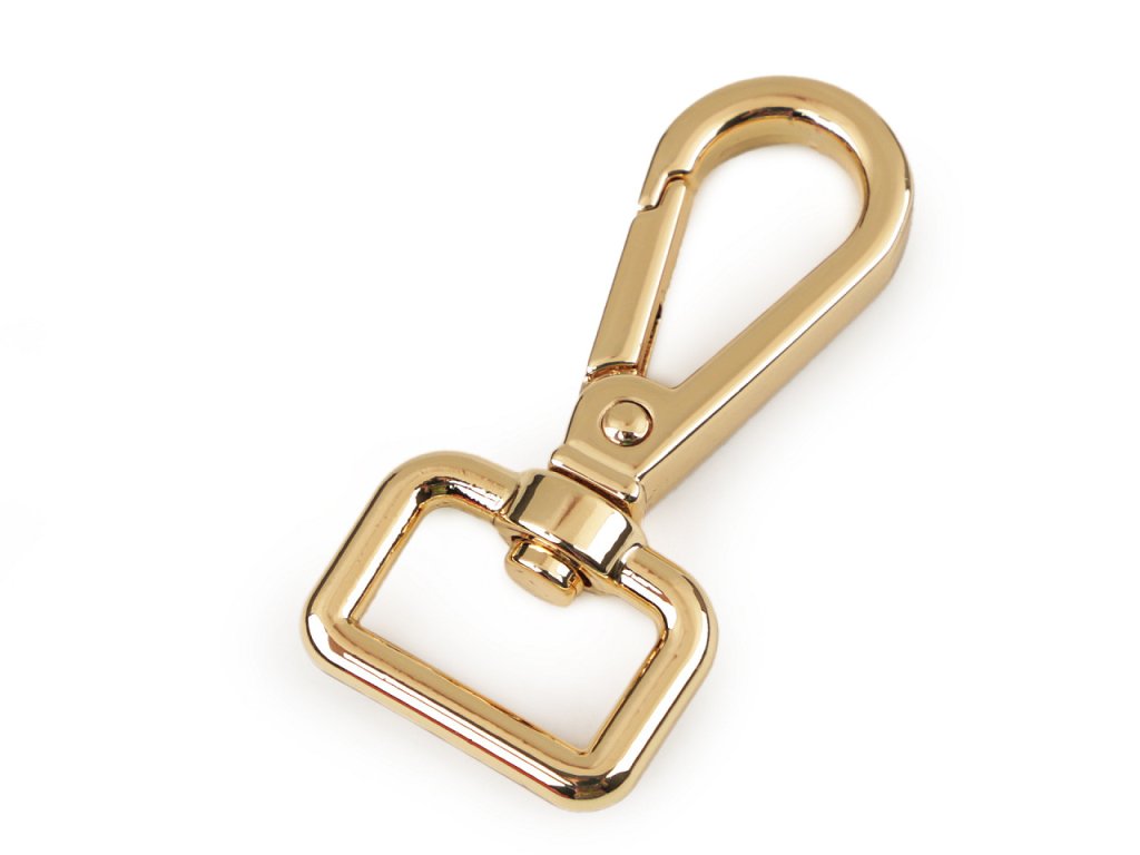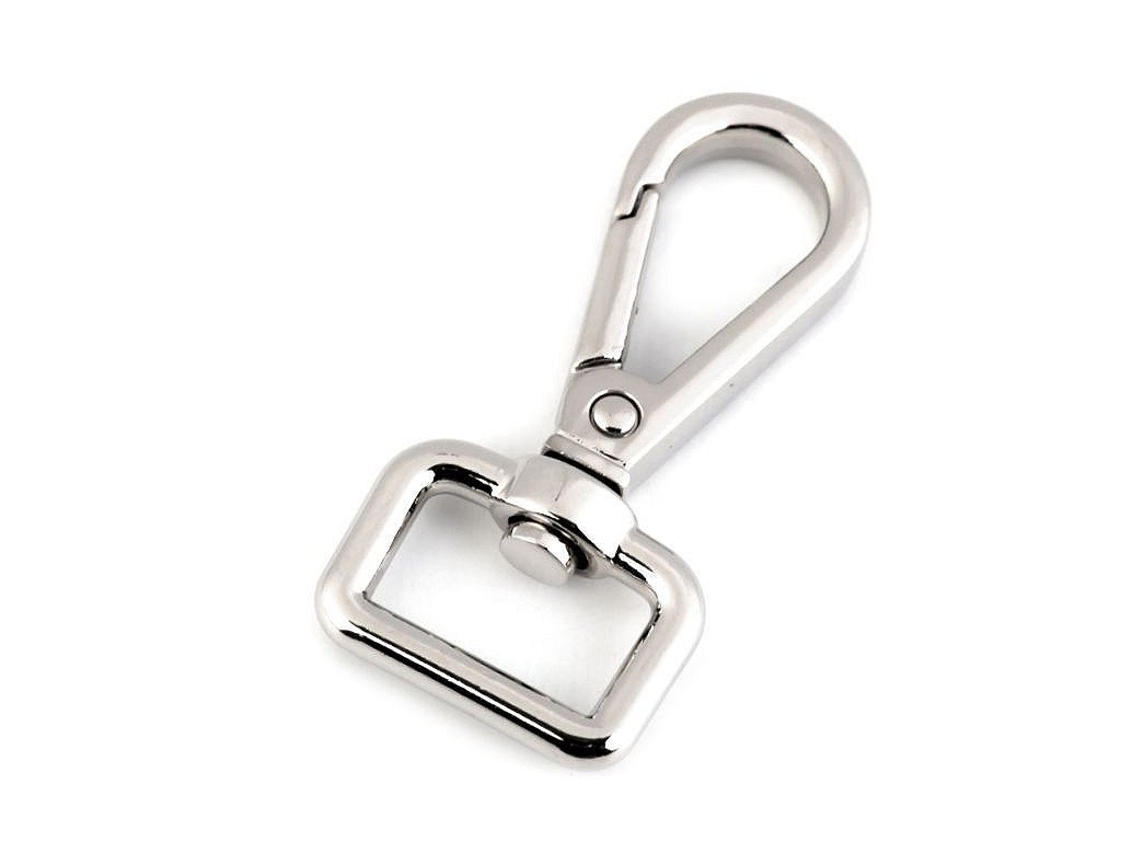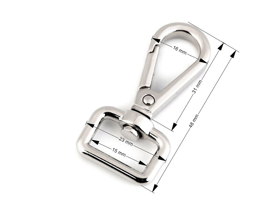 Otočná kovová karabina vám poslouží na upevnění popruhů k taškám či kabelkám nebo také na výrobu vodítek pro psy.- Rozměry celkem: 23 x 48 mm