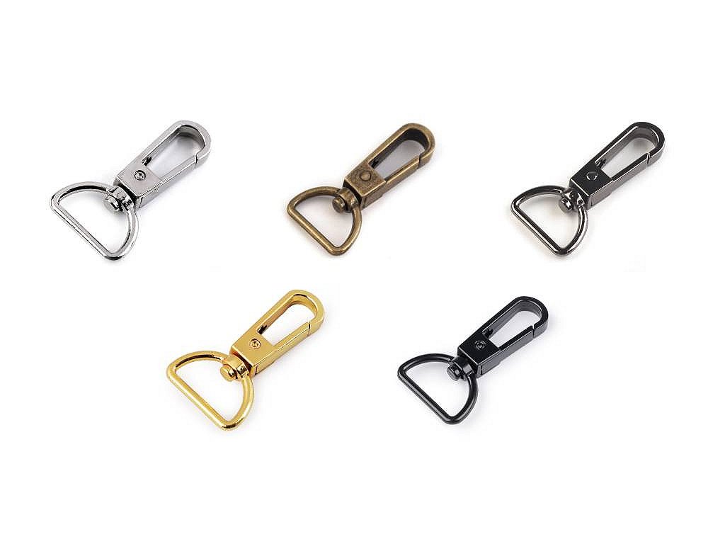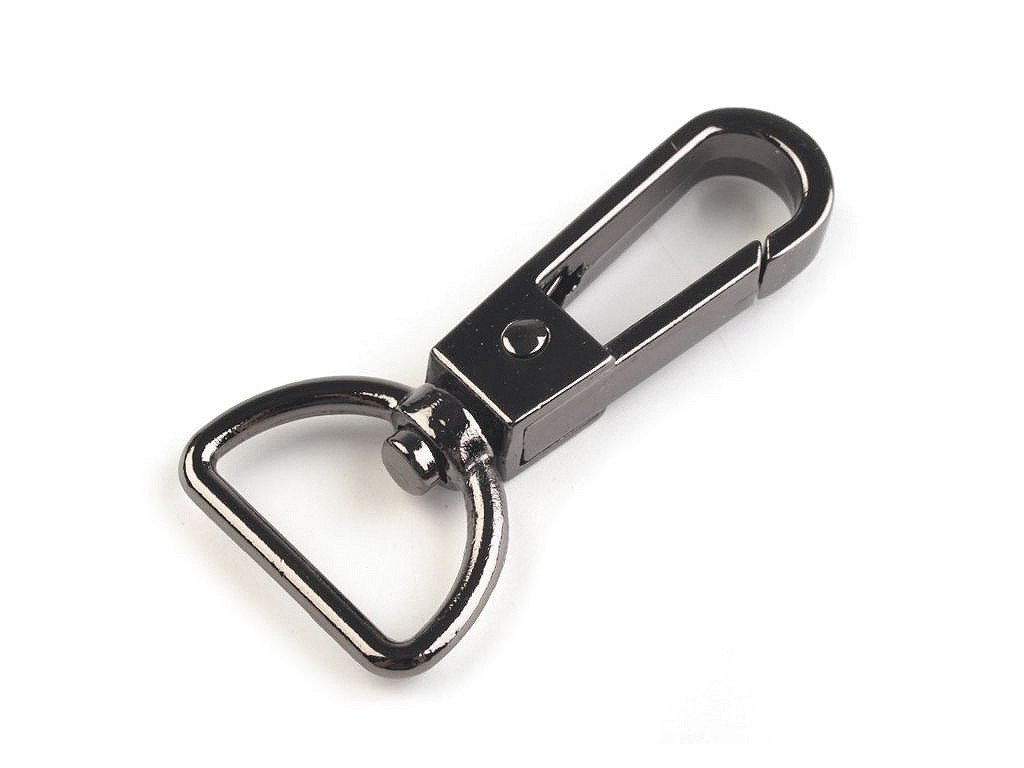 Kovová karabina je otočná. Využijete ji k výrobě klíčenek, vodítek pro psy nebo k připevnění popruhů na tašky a kabelky. Karabina je složena z nemagnetického kovu, magnetické je pouze kolečko uprostřed. Karabina je vhodná na popruh o šíři 15 mm.- Rozměry celkem: 25 x 45 mm