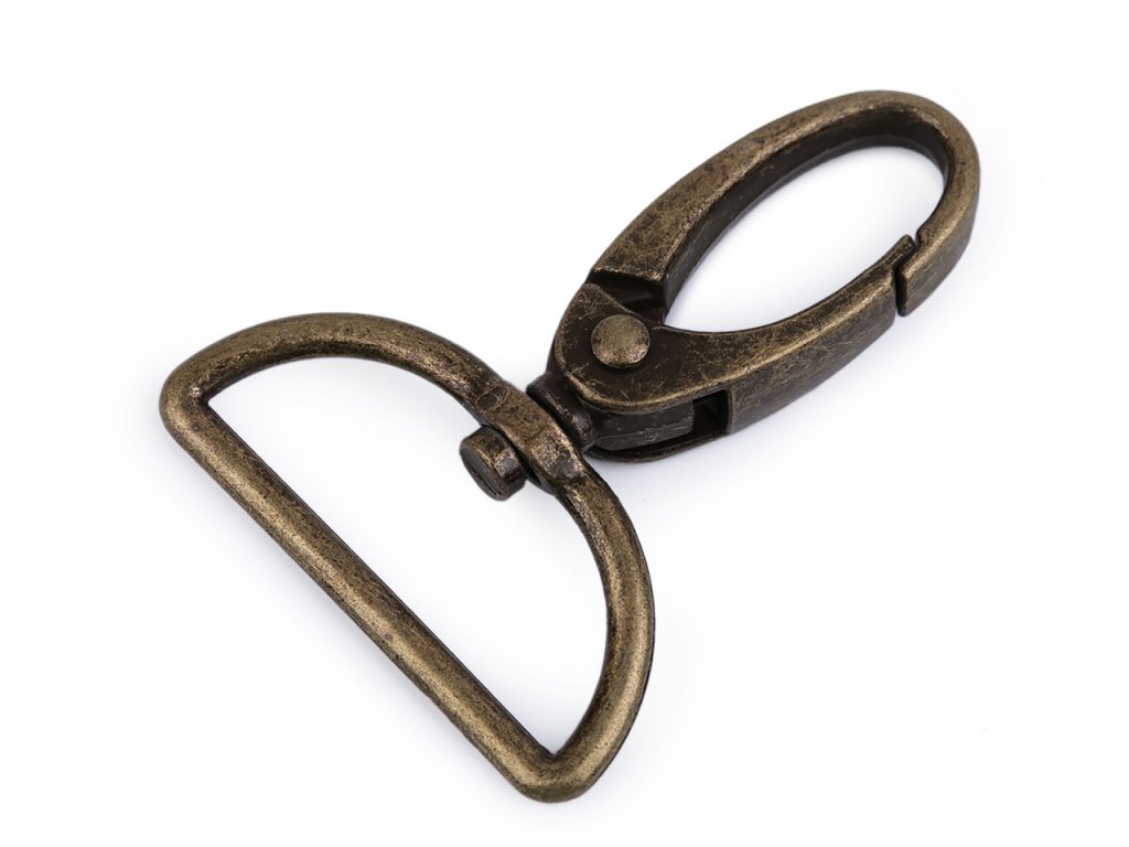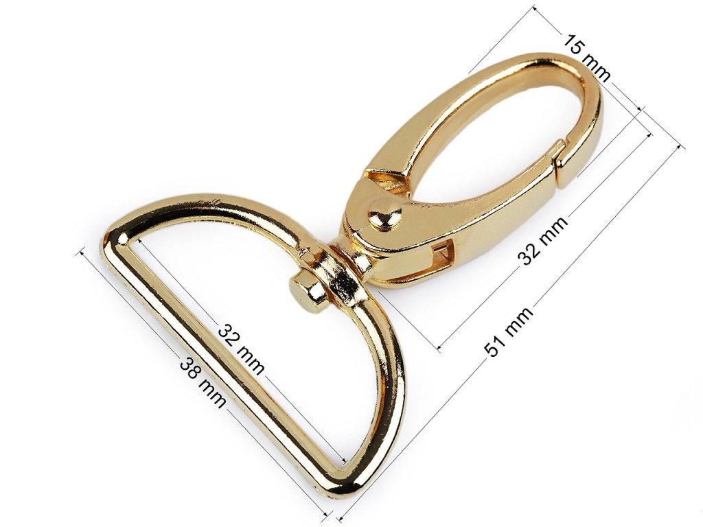 Kovovou karabinou můžete upevnit popruhy k taškám, kabelkám a využijete ji i na výrobu vodítek pro psy. Je otočná. Karabina je z nemagnetického kovu, magnetický je pouze šroubek uprostřed.- Rozměry celkem: 38 x 51 mm