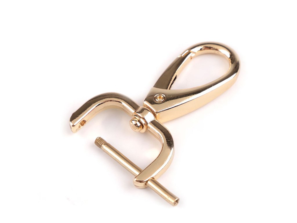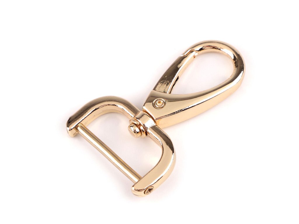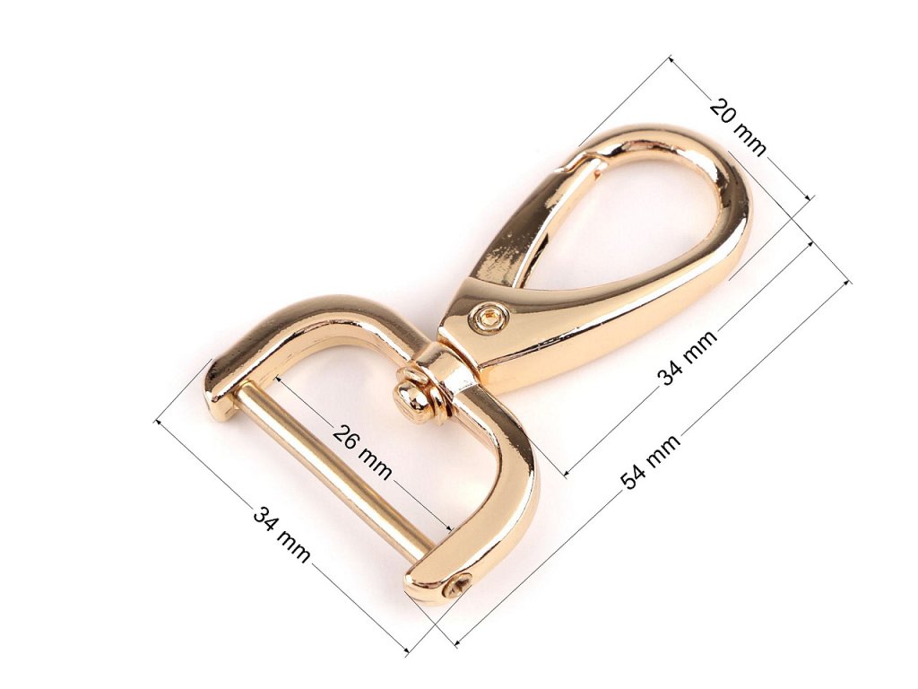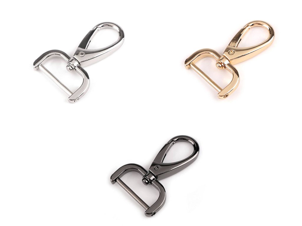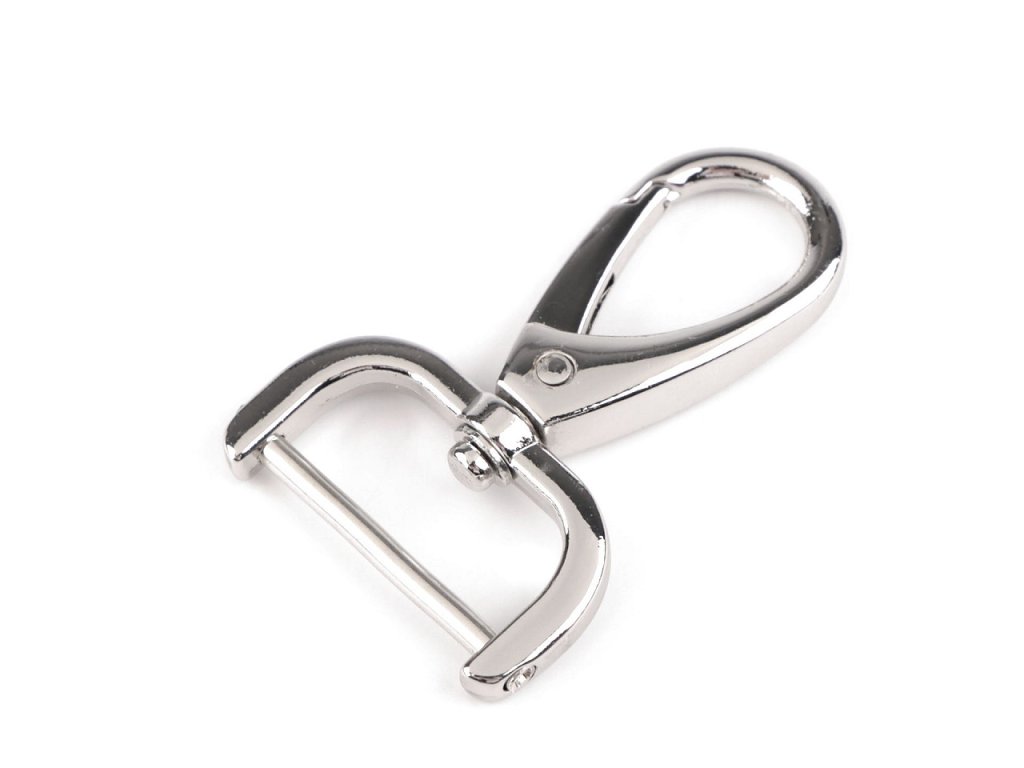 Otočnou kovovou karabinu využijete na upevnění popruhů k taškám, kabelkám i na výrobu vodítek pro psy. Je zajímavá tím, že průvleková tyčinka je šroubovací.- Rozměry celkem: 34 x 54 mm