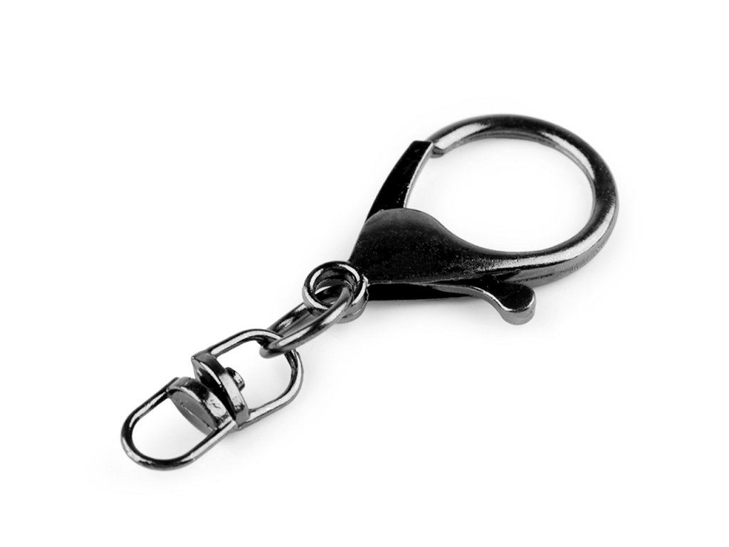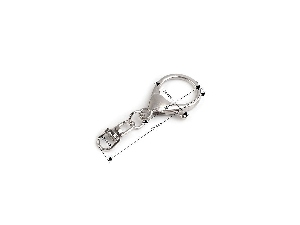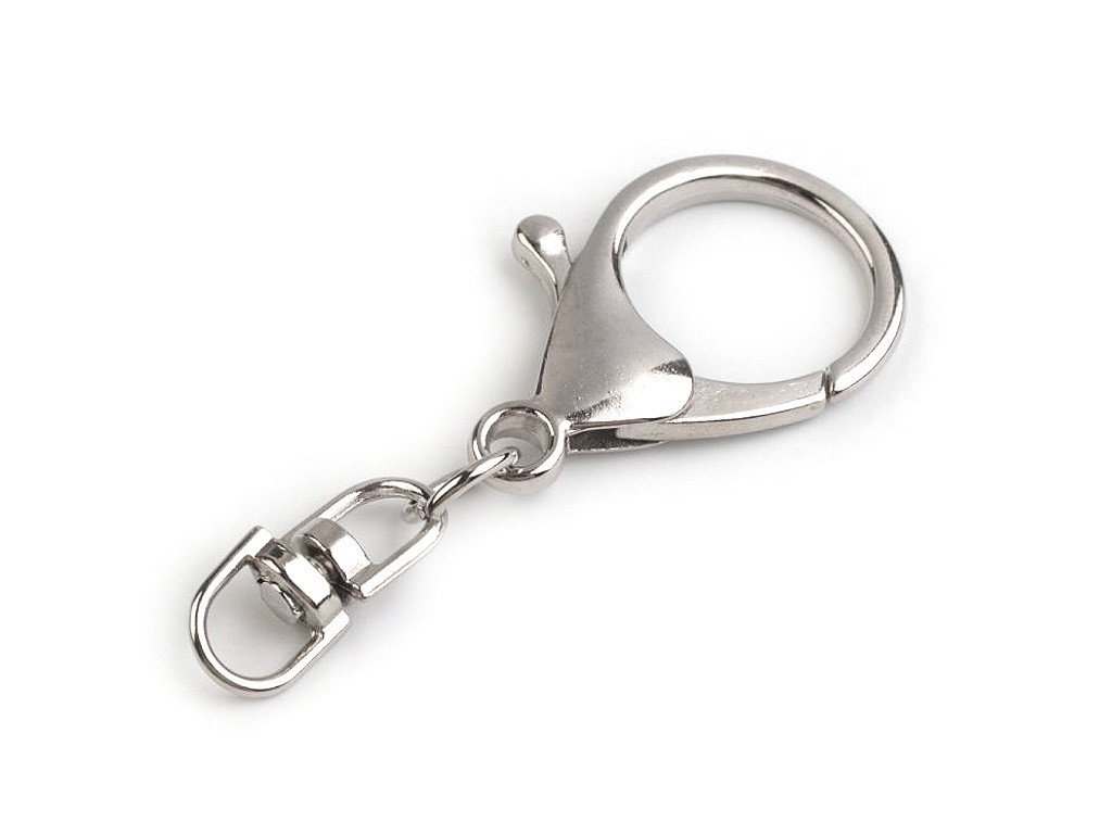 Kovová karabinka je připevněná na otočném obrtlíku. Využijete ji k výrobě klíčenek či různých přívěsků na tašky, kabelky, batohy apod. Karabinka i obrtlík jsou z nemagnetického kovu, magnetický je pouze spojovací kroužek.- Šířka: 24 mm
