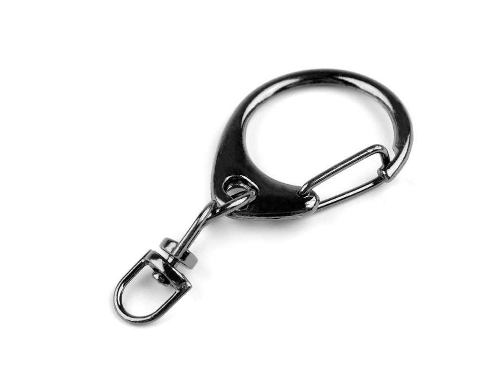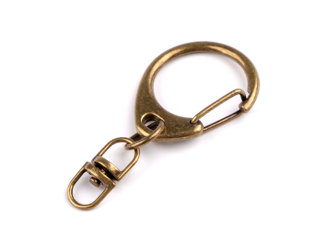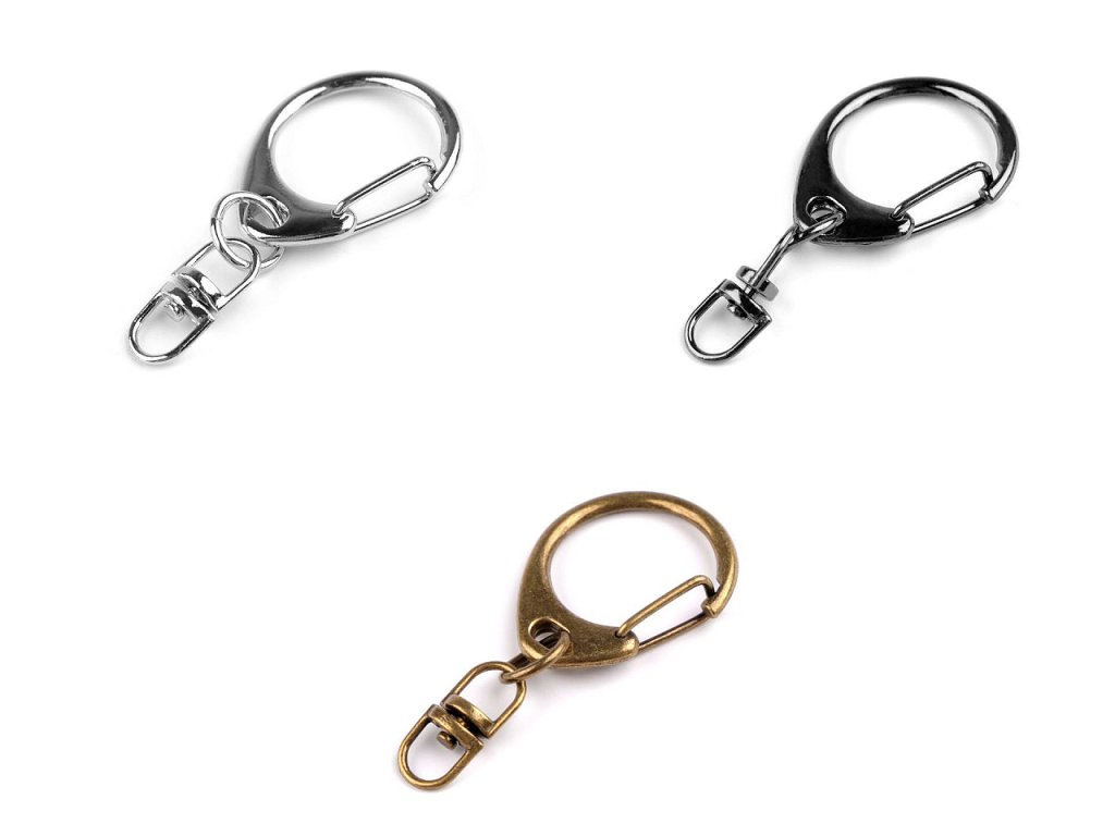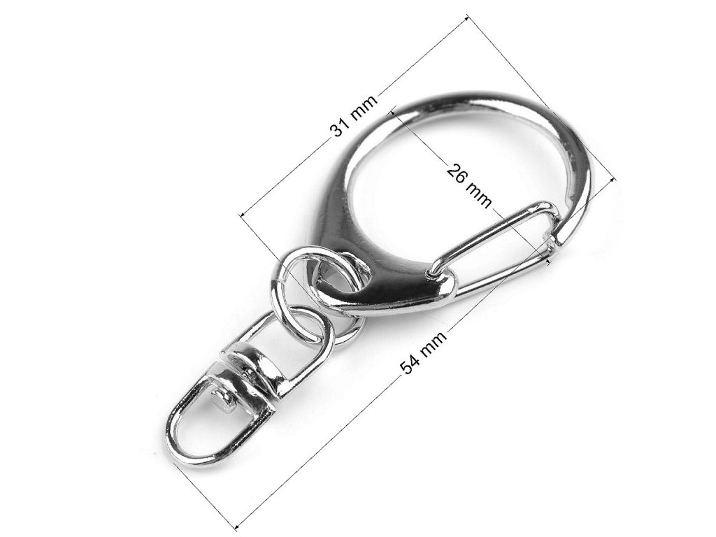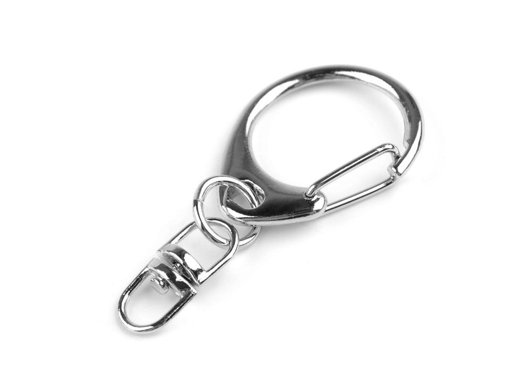 Kovová karabinka je připevněná na otočném obrtlíku. Je vhodná k výrobě klíčenek či různých přívěsků na tašky, kabelky, batohy apod.- Šířka: 26 mm