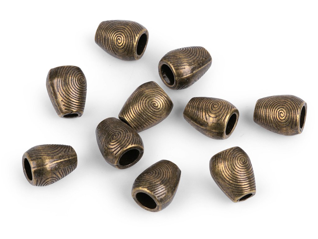 Kovová koncovka je na povrchu ozdobená jemným reliéfem. Využijete ji k zakončení šňůrek, které lemují kapuce nebo spodní lem mikin, bund, kabátků, pasu šatů apod. Zabraňuje vytažení šňůry z tunýlku.- Rozměry: 10 x 12 mm