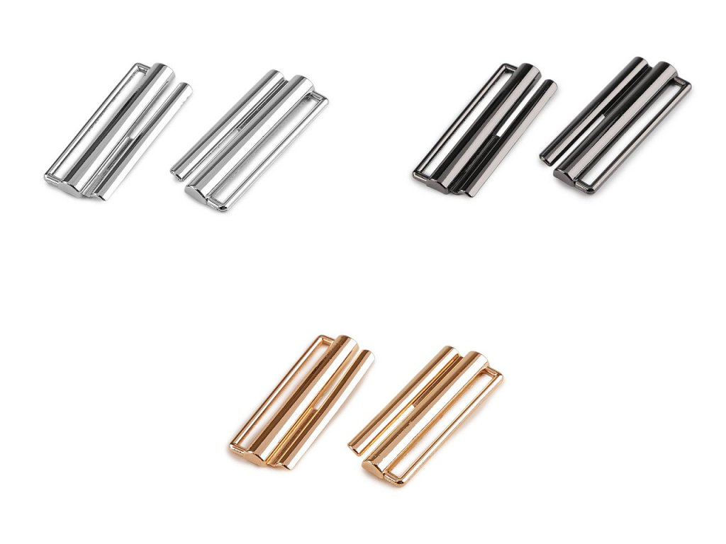 Minimalistická kovová spona se skládá ze dvou částí, které do sebe zaháknete. Využijete ji na výrobu opasků ke kabátům, bundám, kardiganům i šatům.- Rozměry: 24 x 44 mm