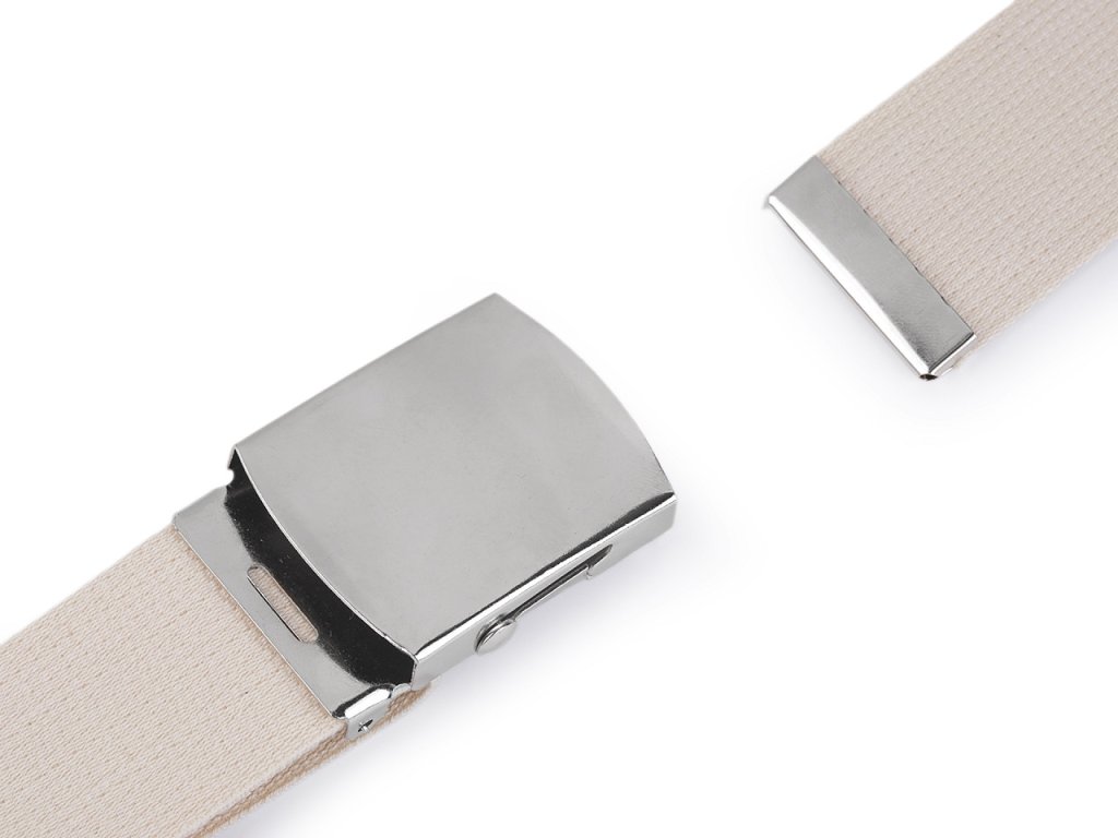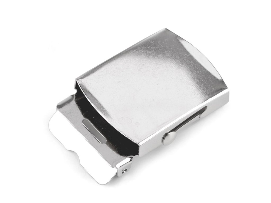 Lesklou kovovou sponu využijete na výrobu popruhových (látkových) opasků. Spona má na jedné straně zoubky, které popruh dobře zafixují a přidrží, takže materiál nebude prokluzovat. Je vhodná pro všechny klasické popruhy s tloušťkou do 4 mm.- Rozměry: 44 x 64 mm