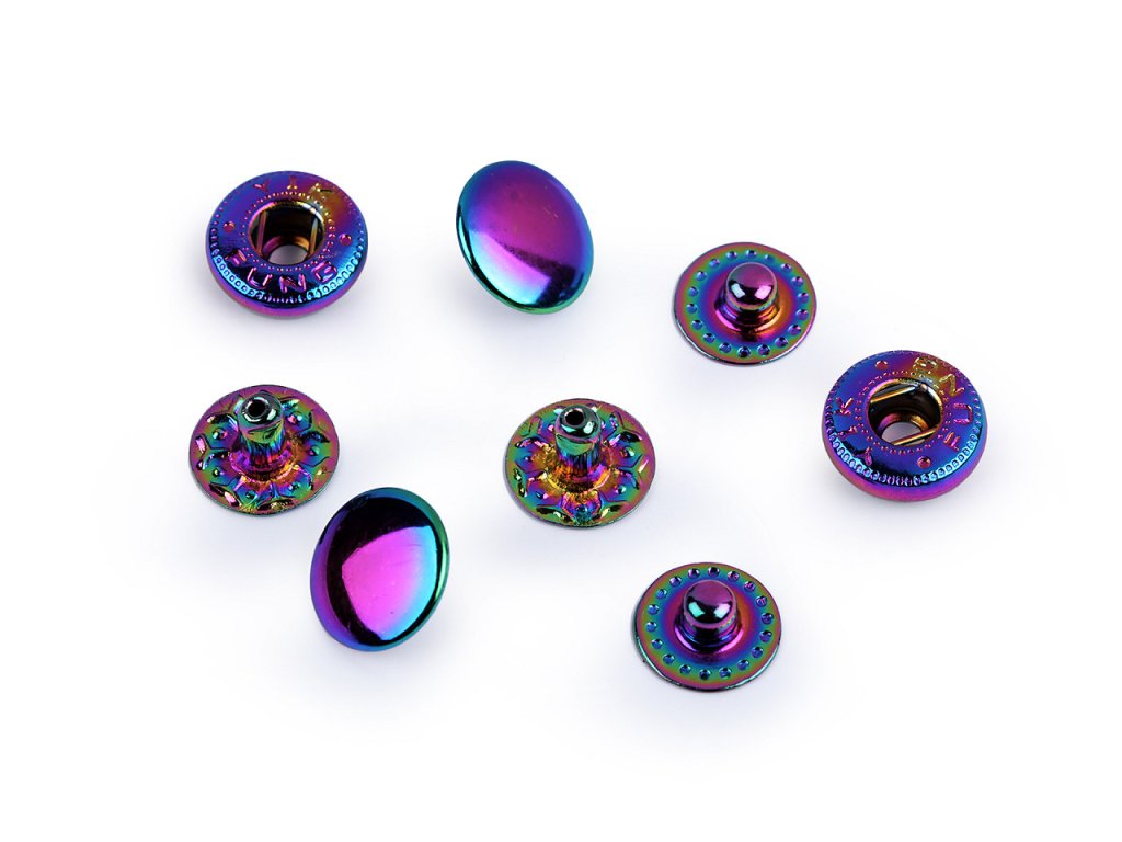 Kovové druky Ø10 mm na středně silné látky, duhové