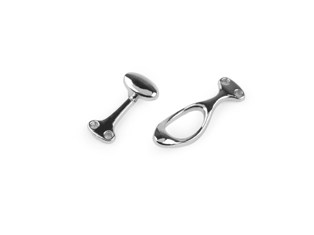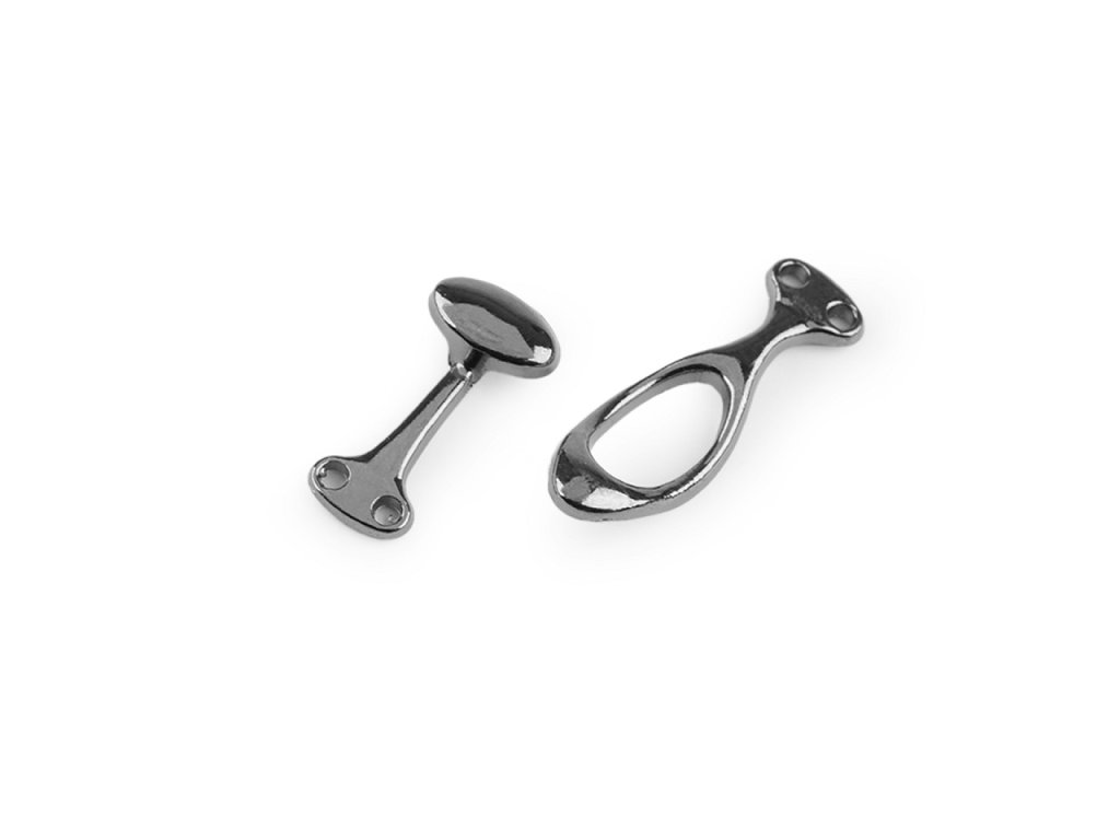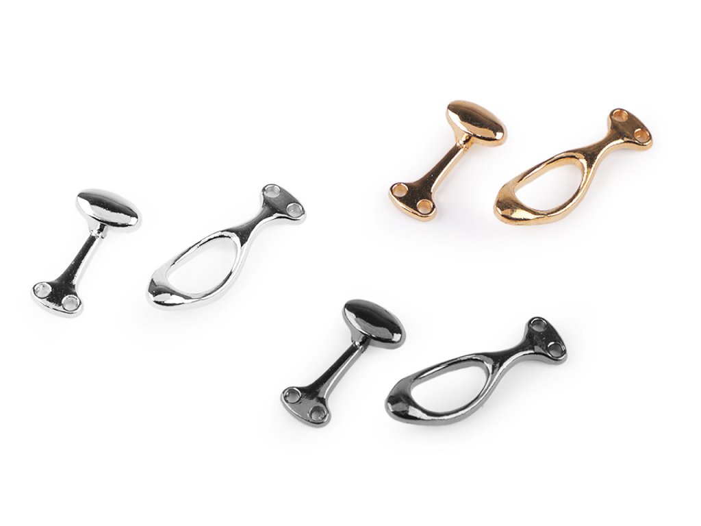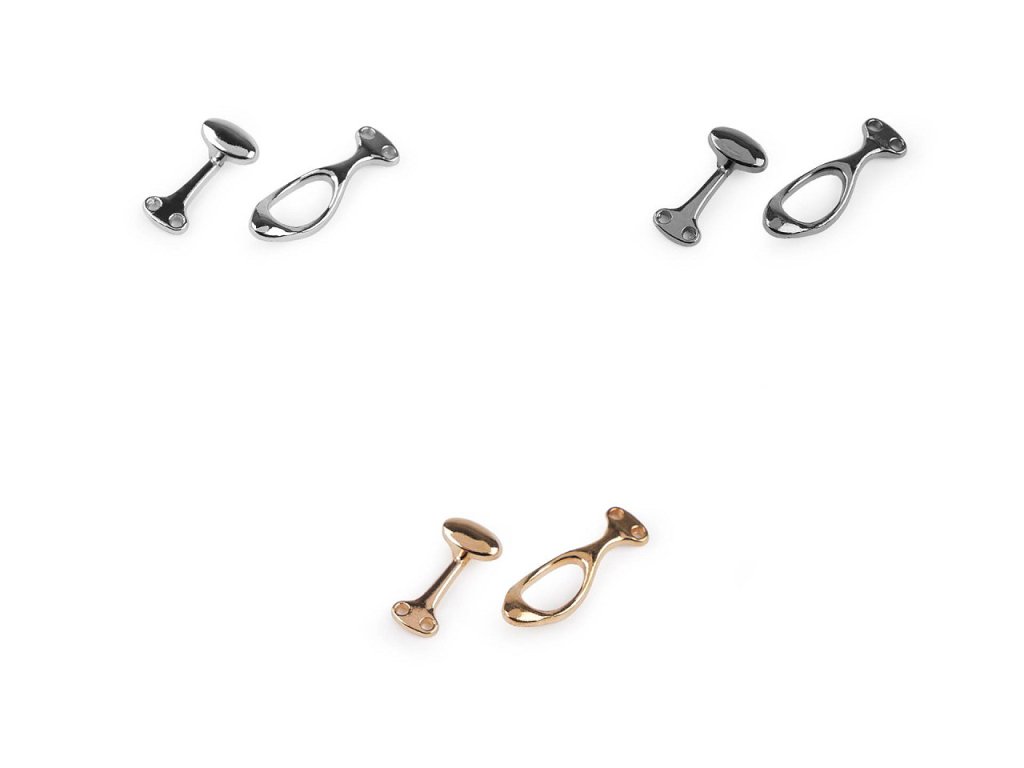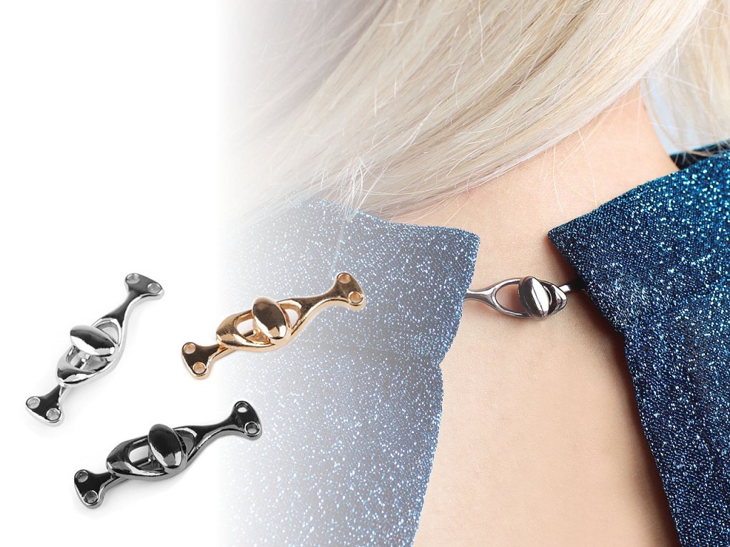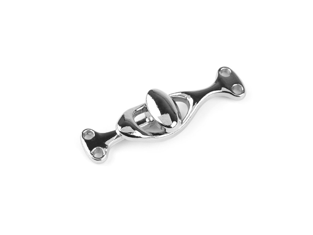 Designové minimalistické kovové zapínání se skládá ze dvou částí, které do sebe zaháknete. Vynikne na oděvech i doplňcích. K materiálu se přišívá. Otvory k přišití mají průměr 1,5 mm. Celková délka po zapnutí je 36 mm.- Rozměry: 10 x 36 mm