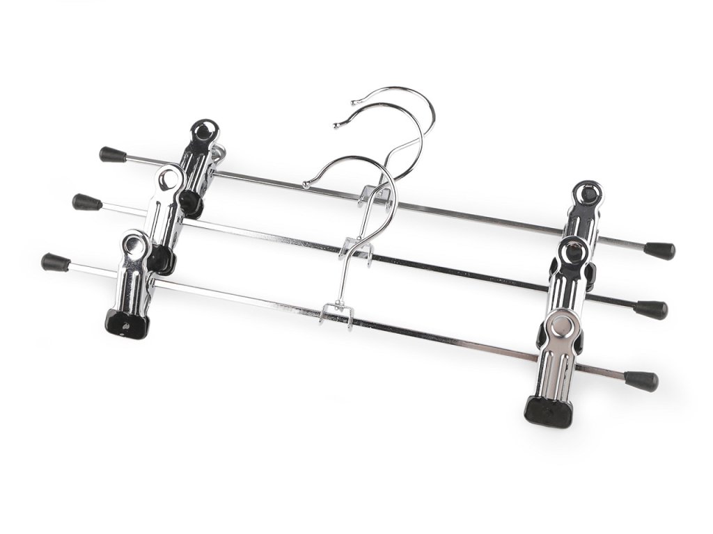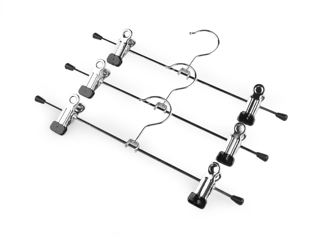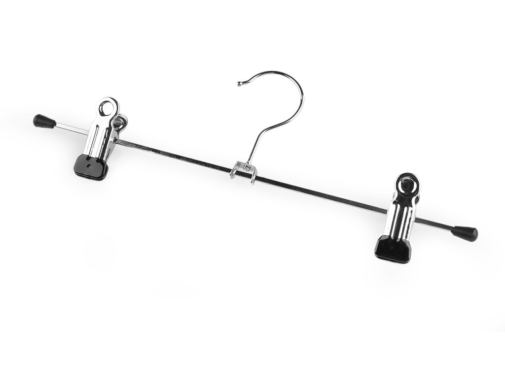 Kovové ramínko s klipy je vhodné pro prodejny k vystavení kalhot, šátků apod. Klipy mají pevný stisk, pogumované konce a dají se po ramínku posunovat.- Délka: 30,5 cm