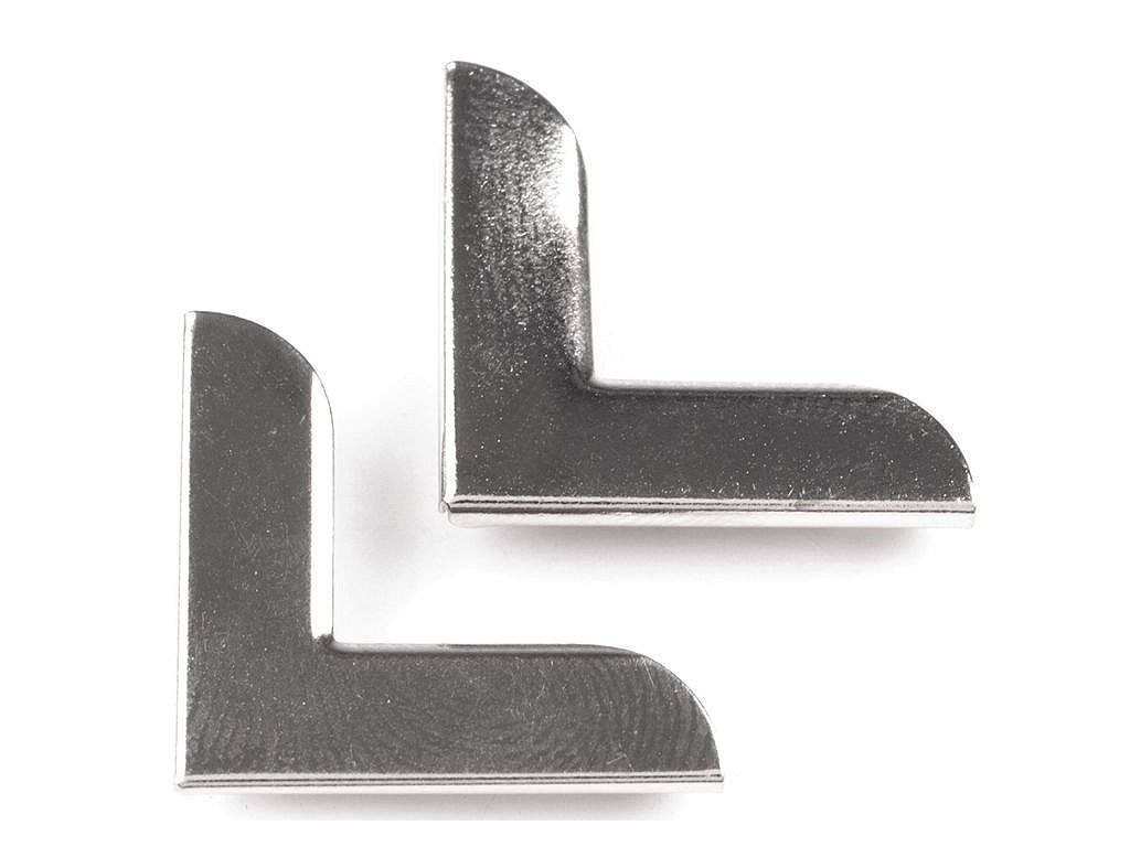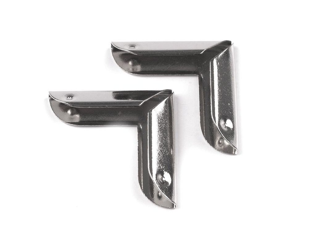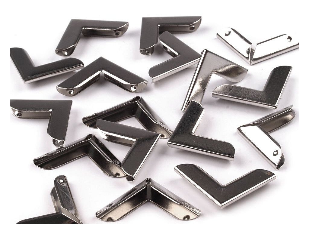 Kovové rohy jsou určené pro zpevnění a ochranu rohů kabelky. Může sloužit i jako ozdoba na rohy obrazu, diáře apod. Rožek nasuneme na materiál a lehce zmáčkneme kleštěmi tak, aby dobře držel. Rohy jsou vhodné pro materiál o tloušťce max. 4 mm.- Rozměry: 19 x 19 mm